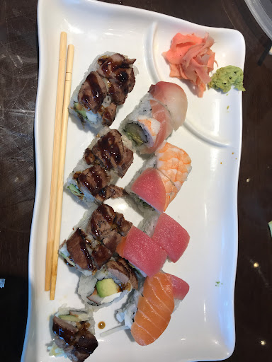 Read moreI was very excited to have a Japanese restaurant open up nearby! Itâs a quick service/counter service restaurant with booths and tables in the room. Itâs in a small square footage space, so it can feel a bit claustrophobic when itâs busy. It was very busy when we arrived (all tables & booths were full, several people in line to order and several people seated to the right waiting on their to-go orders), so we were a little worried about how long the wait for space and food would be. There were three screens of sushi options and one screen of hibachi options above the counter - so there is quite the sushi selection to choose from. I ordered the Philadelphia sushi roll (salmon, cucumber, and cream cheese) and Shrimp/Chicken/Steak Noodle bowl. My husband ordered the Dragon roll and Express Chicken Bowl. It took about 15-20 minutes to get our food (again, it was very busy at the time). The food arrives in plastic containers, so itâs easy to take leftovers home.
