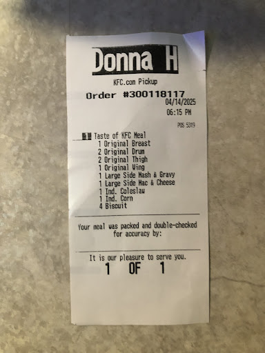 Read moreThe worst KFC we have ever been to! I wouldn't even give it a star! Attitudes were ridiculous! She asked "is that it" after everything we ordered! Finally get to the window (they pulled both vehicles in front of us up) and she said um you gots 2 sweet teas and a unsweet? No, we didn't order unsweet we ordered a mountain dew. Different girl comes to the window "here go yo food have a good day". At this point I have no drinks and they still have my card. Girl who gave us the food comes back "what yall need", well my card, the drinks and we are missing food. No yall ain't it's all in there. We proceed to tell her what we are missing. She gets loud with us and walks away with a "I know it's in there". Original girl comes back gives our card and drinks and says have a good day and walks away. I proceed to ma'am ma'am we are messing food to which she replies "no you got your food"! Receipt in hand I show her they are wrong, second girl proceeds to yell "damn I got it! Gives it to original girl slams it down in my hand and walks away.
