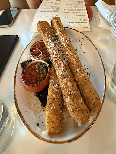 Appetizer: Mozzarella Cheese Sticks 7/10 Very delicious and definitely recommend, especially if you have a large group. Maybe not ideal for a party of two because it comes with 3 huge sticks. Could have had slightly more seasoning, but overall very enjoyable. The marinara that came on the side was great and we think it was probably homemade.