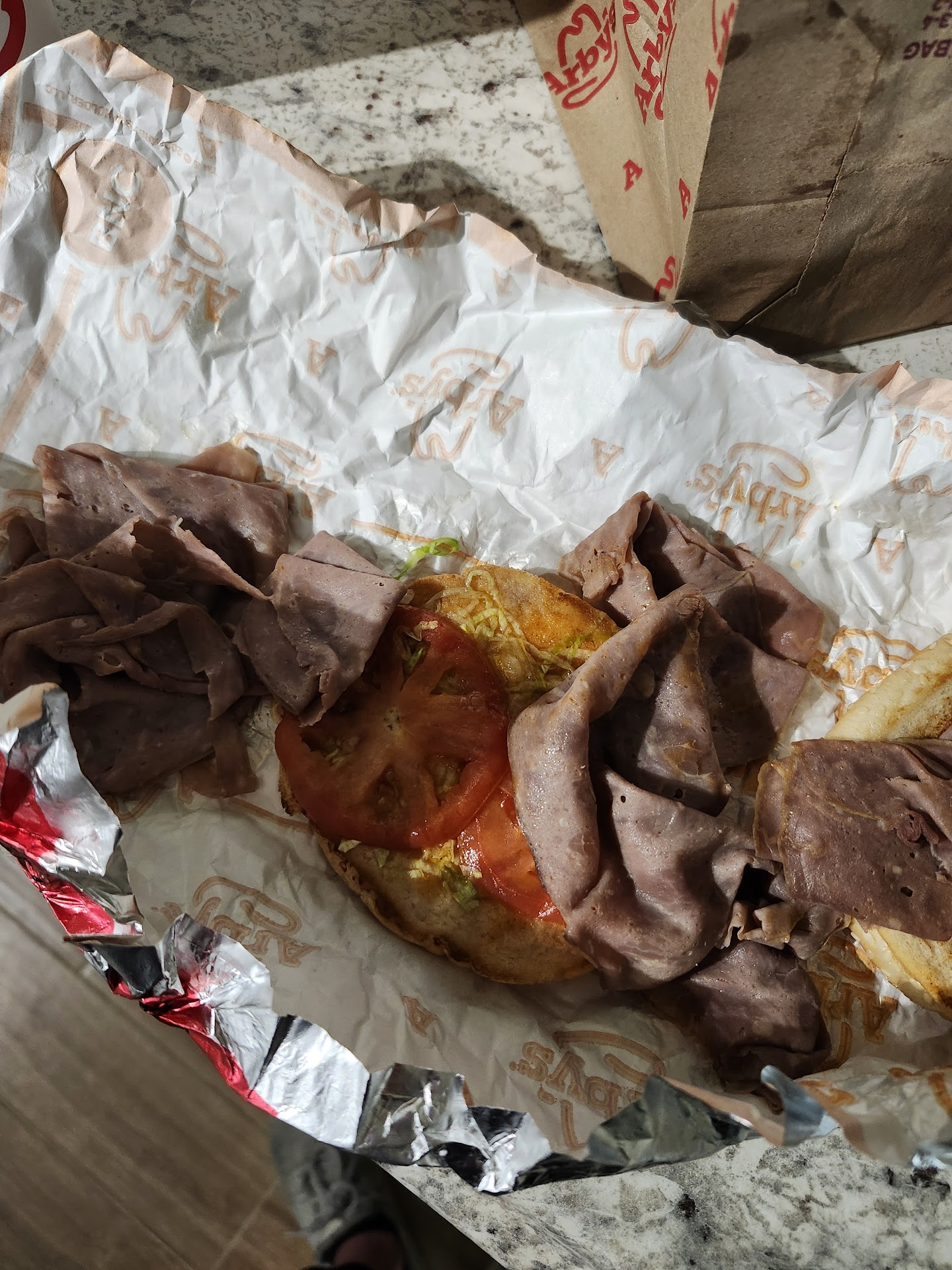 Food is as good as an Arby's can be. I think the staff does an amazing job, but the Manager seems to be the one to get it together. They are short staffed like everywhere else in this world, and on a number of occasions I have watched the employees bust their butts to do the jobs of 2 or 3 people. While this is happening, I also usually watch the manager yell at them to move faster or do their jobs. Today, she was so busy yelling at the poor drive-thru worker who was doing his best to juggle multiple jobs to even make sure she was handing me the right food. She ripped my bag out of his hands and basically threw it out the window at me. She didn't even stop yelling at him while she was handing me my food. Very unprofessional. I get back to my office, and see she handed me the complete wrong bag of food. Now my lunch break is over and I am stuck with food I won't even eat, all because she needed to yell at someone and couldn't even be bothered to check the bag of food she was handing me. This is probably the last time I go there unless the manager decides to change...