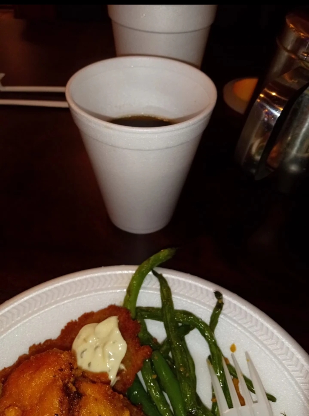 My biggest gripe would be the silverware or lack of. All utensil and plates were plastic and Styrofoam, not to mention the cups which were either styrofoam as well or just a canned pop.