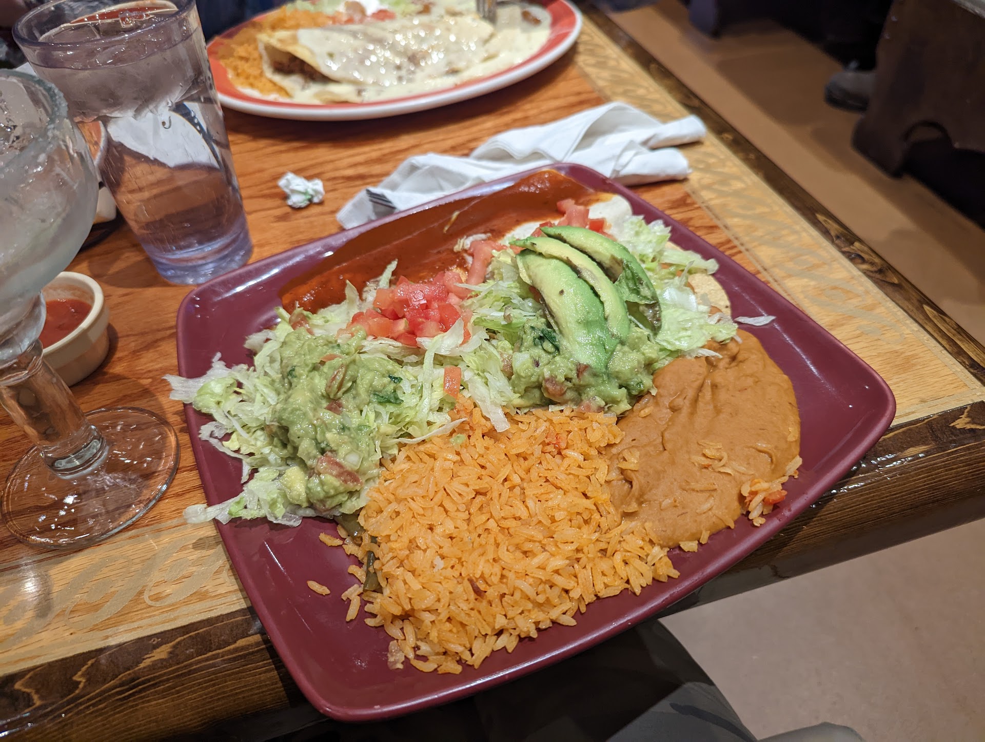 Ā Ā Ā Read moreFirst visit here on a whim. The food was delicious but not perfect. My chimichanga with fajita shrimp had large chunks of green pepper in it. I wish I'd known because I would have ordered something different. There were plenty of shrimp inside the chimichanga which almost made up for the green pepper. Why can't places use RIPE peppers: the red bell peppers. Sweeter taste and easier to stomach. At least the green pepper was cooked or I would have sent it back. The queso blanco that covered the chimichanga was amazingly delicious. Grilled shrimp with cheese on it? I never expected to enjoy it so much. The rice is okay but tastes like it's seasoned with a packet from the store. The refried beans were tasty but I tasted animal fat so they're not vegetarian friendly. Shrimp are fat free and they wouldn't have used them to make beans. Their chips are standard but better warm. The salsa is mostly runny with minimal chunks. The reducer cap was missing from the bottle of Tapatio on the table and I accidentally filled my salsa cup with hot sauce. I got an empty cup to start over.