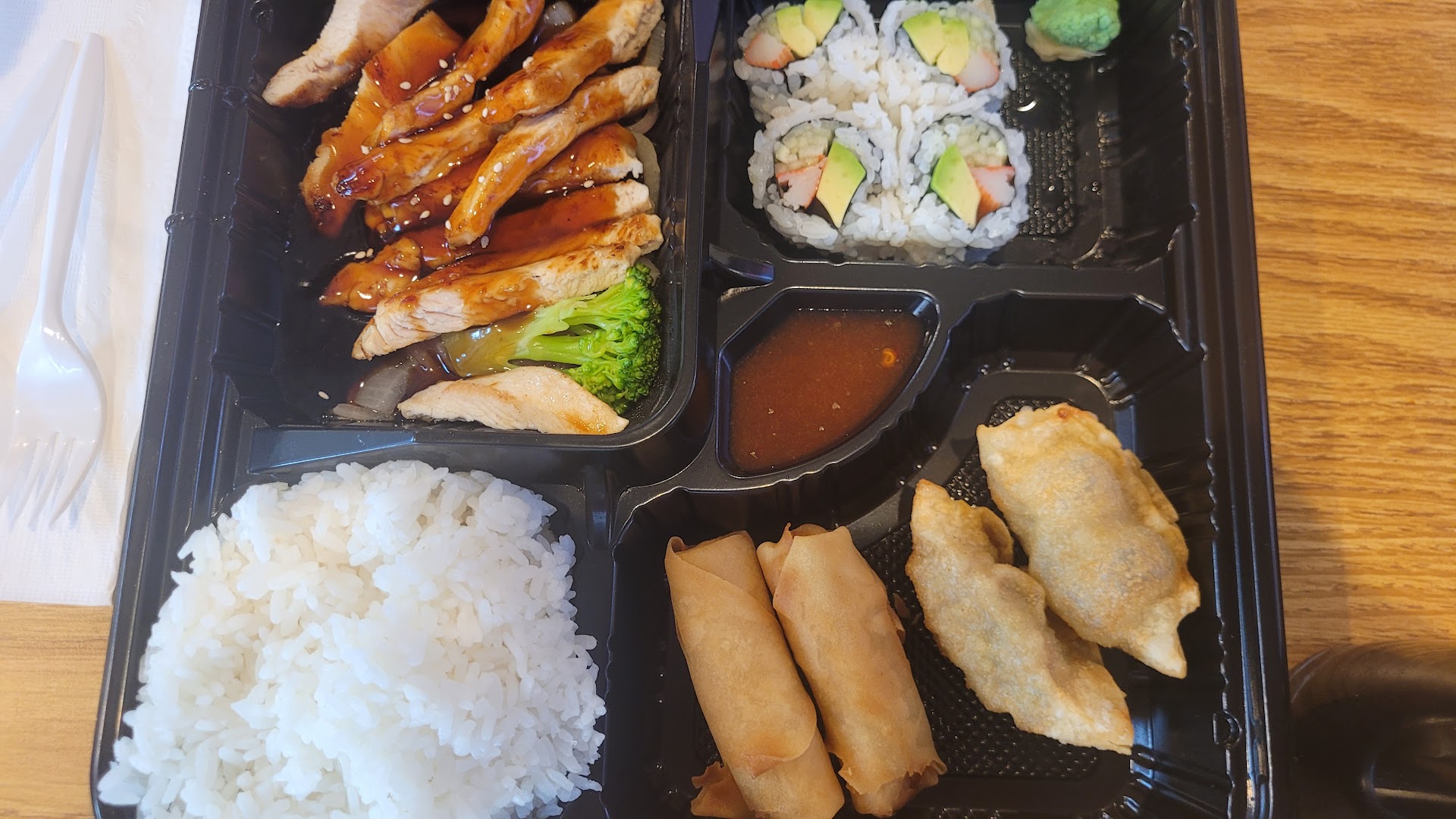 Read moreWent in for a quick bite at lunchtime. Really cute place, and the service was quick and really nice. Pricing is the same as a sit-down restaurant, so I expected the food to be about the same, although this place is more of a quick in and out. I got two rolls that were good. (My Opinion... They need to make sure the ingredients are portioned right in the roll so the bite is balanced. My one roll had to much cream cheese.) I also got a kani salad and dumplings. The taste of the salad was good i just think it should be colder compared to all the other places I have tried. And the Dumplings tasted great, I highly recommend them! The pop was flat, but I didn't complain about anything because it didn't bother me enough. I will return to give it another try...