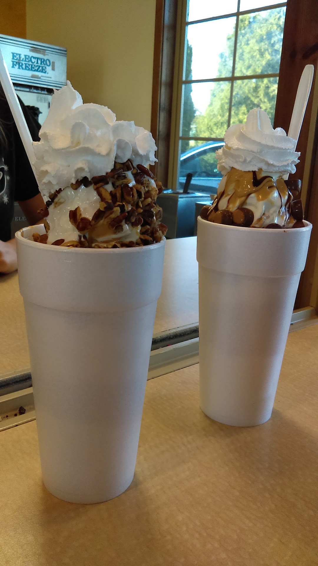 Ā Ā Ā Read moreOh My Goodness! I'm an out of town visitor, but I'm contemplating going for a nice 1 hour drive for some ice cream. The size of these Sundaes are huge! Its hard to order I'd you've never been here. There are signs posted all over the front glass, and Lines extend out the building. So, you gotta look around lol. Jump in line tho, this is a happening spot. We were excited to pull up, find a lucky parking spot, and realize this is one of town gems! Little league uniforms, moms and kidsz, dates, everyone was here. I got the BuckEye Sundae, vanilla ice cream with peanut butter sauce on top, in between, and with buckeye candies on top. Hubby got the white chocolate something. We got large, paid 9 dollars. (I'm use to paying cold stone prices, around $14). We were excited for the price, and excited it lasted me all through our night walk. Dare I say, too much PB, and I'm a PB...