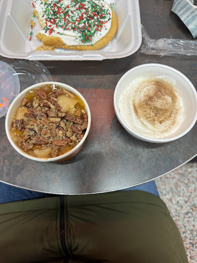 Ā Ā Ā Read moreI hate to do this BUT I want to warn others. I thought I was paying for food experience with my family for a treat. Pictures online showing fresh scooped ice cream which is creamy and domed over hot peach cobbler. Then Iām handed a brown bag and styrofoam box. (I was never asked if carry out or dine in.) Iām like $25 bucks for this experience⦠the ice cream pre-scooped and frozen like a block of ice with frost on it for my cobblerā¦. Iām severely disappointed. I went to the counter to ask about the staff acting like they just want to hurry to get you out the door. (Which they forgot my cobbler in the bag also so glad we were sitting in.) My toddler could nearly get the ice cream out to even eat. I would highly NOT recommend this place for your family outing. (Word of mouth matters). The cobbler was good but you can make nicer at home and pudding was definitely nothing to write home about. Nothing...
