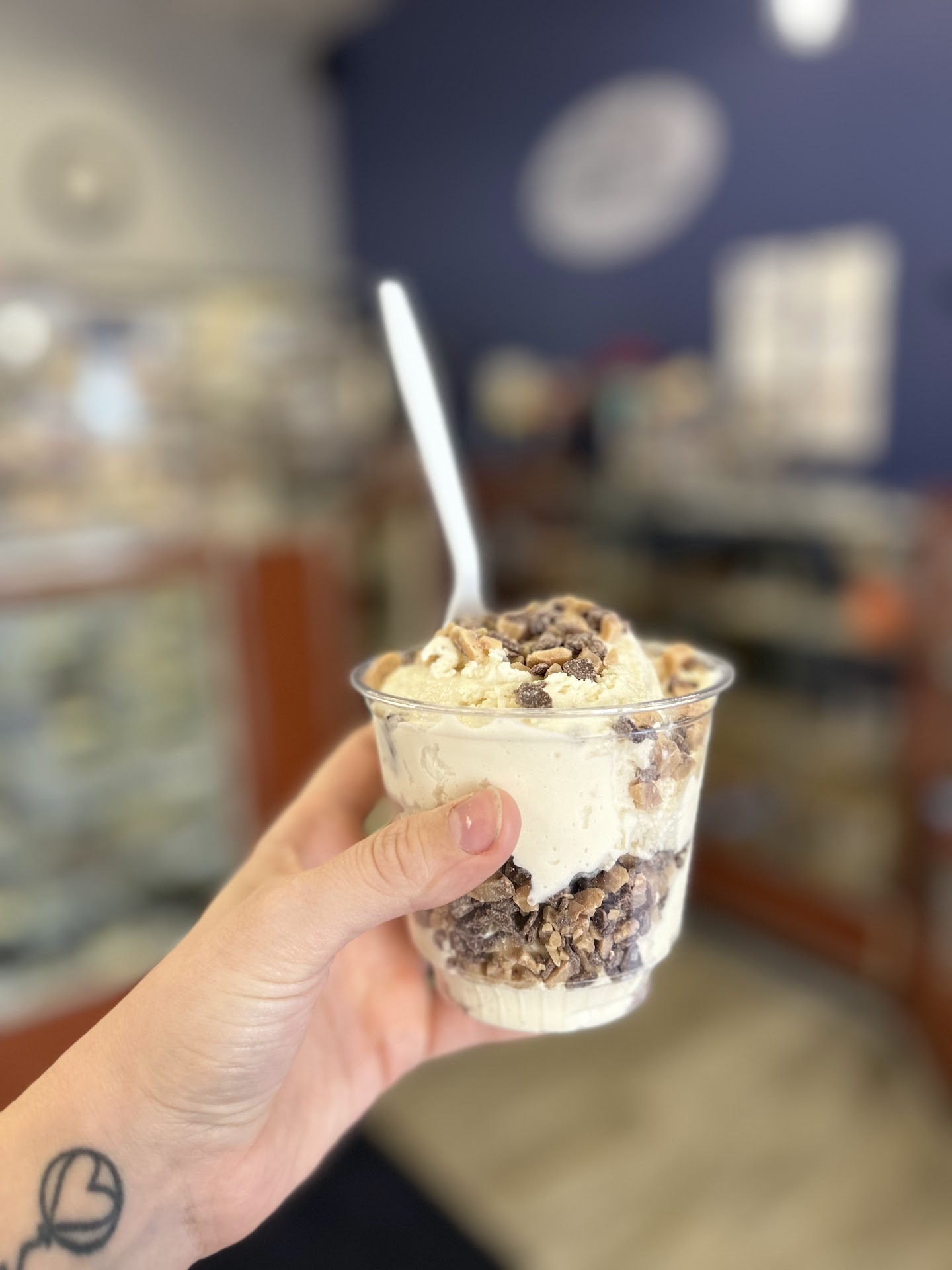 After eating at a nearby Restaurant, I was wanting Frozen Coffee. My Wife and I wanted to try this place, as my Wife said, that, every time She wanted to try it, they were closed. We went in. On the window, is printed âChocolate Coffee Gelatoâ. Besides the Chocolates on display, and a stand-up sign, that stated prices for Chocolates, I couldnât find any other menu/pricing. I enquired about Coffee. The Lady said they only had plain Coffee due to Starbucks being nearby (must be silly bylaw/stipulation/etc). The Gelato case was completely empty. I asked about that. The Lady said that was being cleaned out, but that the Gelato was in the back. Fine. I wanted the Cappuccino Gelato, but wanted to SAMPLE the Peppermint. The Lady did bring out a sample of Peppermint, that tasted like it had way too much Peppermint Extract or Mint Extract in it. The Lady, then, brought out what my Wife ordered, but brought out two scoops of Peppermint Gelato for me. I told her I ordered the Cappuccino Gelato, not Peppermint. She went back, and brought something else out. It was clumpy, abnormally textured, and tasted like Chocolate. After having gone outside, I came back inside, and told the two Ladies, that I didnât care at this point, but that I think this is Chocolate, not Cappuccino. The other Lady, who hadnât waited on Us, went back to the back to sample both the Chocolate and Cappuccino for herself. She said someone must have added too much of something to the Cappuccino flavor. I just left with my most-likely-Chocolate Gelato. I just wanted a creamy, frozen Coffee. Iâm happy for the other happy reviewers, but I cannot relate to their experiences. Good for them. My mileage varied...