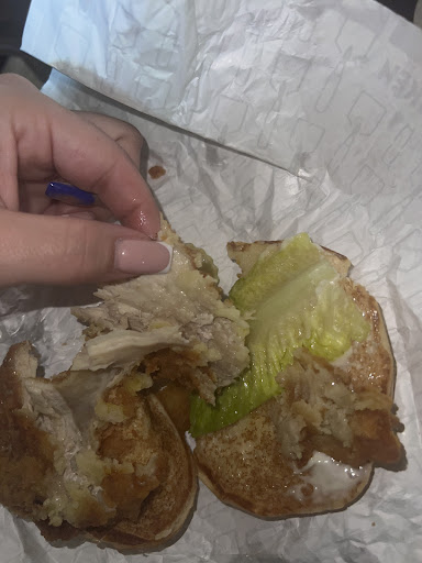 I waited 8 minutes in the mobile spot, and just as I was about to get out of the car, someone came out with my bag. Four cars that ordered after me got their food first, so I guess they weren’t waiting on chicken. I took a bite of a nugget right away, becayse who doesn't sneak a taste in the parking lot—turns out, I was not waiting on chicken... because it wasn't fresh at all. Room temperature at best.