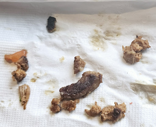 When it finally came, there were beef chunks dispersed throughout (see photo). I'm not a vegetarian, but I have given up meat for Lent, and this dish was listed in the "Vegetarian Dinners" section. Was it retaliation by the cook who made the mistake? True vegetarians would be furious.