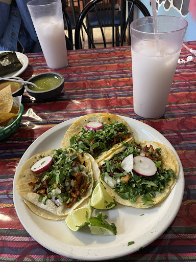 just left from this place and truly had to do a BUYER BEWARE for everyone. upon entrance, decor is rooted in culture, i loved it. it's bright and festive but the horrible sound of the gym above is enough of a reason to not dine in. i unfortunately dined through the sound of weights being slammed by the gym above and it sounded like it was going to come through that ceiling. when placing my order for myself and a friend, i tell her i'd like the 4 tacos for $13 as i point to it on the menu. no language barrier, i speak spanish. she asks do i want everything on it and i confirm i do. cool. we get 2 natural juices, $4 each. tacos come out and they are HUGE (not in a good way)! mine fell apart, i ended up eating the whole thing with a fork and scooping it with my other hand like im eating fufu. alright cool, this place isn't about presentation, its fine. i know where i am so expectations aren't crazy high. but you know what was high? MY BILL! Total was $31 because home girl charged me for 4 separate tacos and told me that with "everything on it" was $1 extra for every taco. that was foul and for that reason and the noise, i wont be patronizing this business again. who in their right mind would pay for soggy and basic tasting tacos $5 a piece in Amboy? this is what i get for trying something new. gonna stick to my original spot, Sabor A Mexico. never going again. highly recommend that if you come here, make sure you hold the menu up and confirm that they are writing down the order you are actually asking for and not something else they want to upcharge you and switch it up on you and act like they didnt hear you right the first time. i most definitely feel played but they played themselves on...