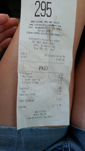 Read moreThis McDonald's is hit or miss. We have been there about 6 times for breakfast since moving to Peru. 4 times we ordered apple pies for breakfast. 1 time they were very overcooked where the pie filling was rubbery. Another time they were cooking apple pies and we were asked to wait at the second window. After 15 minutes I went inside to find that our order was in a bag under a heat lamp and that they had forgotten about us waiting for the pies. The third time we were told they only had 1 apple pie while ordering so we added an apple fritter instead. The forth time, we had paid for our meal then were told they only had 1 apple pie, but they did substitute an apple fritter at no additional charge since we paid for 2 apple pies. As I stated, they are hit or miss. Specifically about apple pies, they are very much like Forrest Gump and that box of chocolates. You just never know what you are going to get. The drive thru service is the same. If you get there when there are 1 or 2 cars, you will be fine. If there are cars backed up past the intercoms for ordering, then be prepared to wait a very long time. The last time we were there, we waited 5 minutes without any movement in the drive thru. We had not even got to the point of ordering. We were in a hurry and left to go elsewhere. McDonald's is the example of fast food, but this location doesn't quite get the idea of fast. They should contact the McDonalds at 15101 Thatcher Ln, Carmel, IN 46032 and see how they handle their drive thru. That location is super fast even with a large number of cars in...