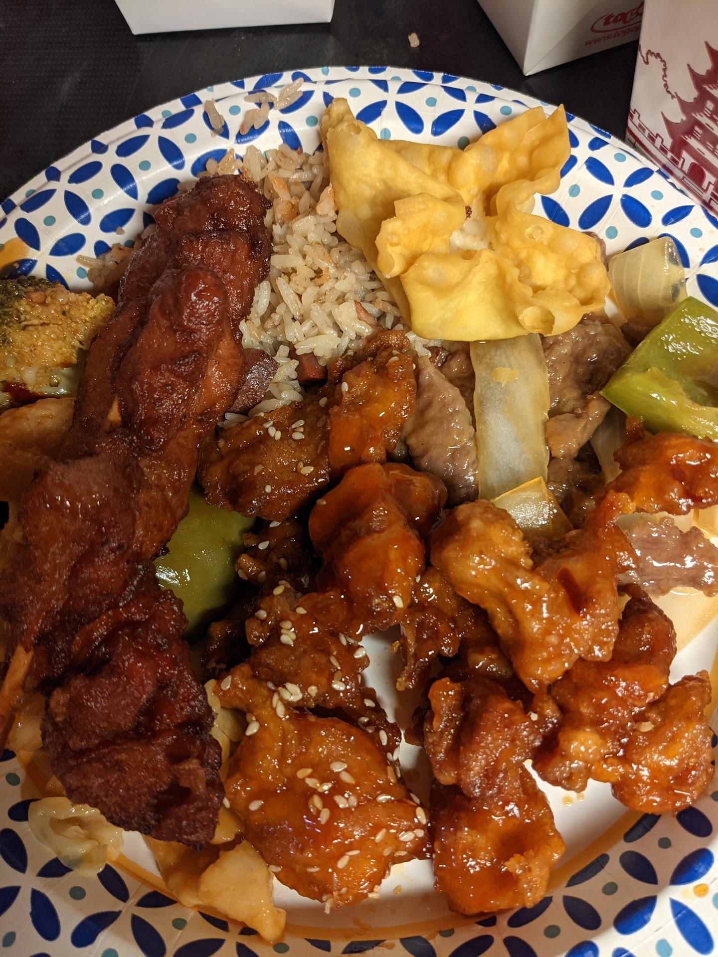 The General Tso chicken, honey chicken, and sesame chicken were all soft; there was no crispiness left to the skin. The meat itself was mushy. My meal was not too long after normal lunch rush hours, but these felt like they'd been out on the bar since before lunch began.