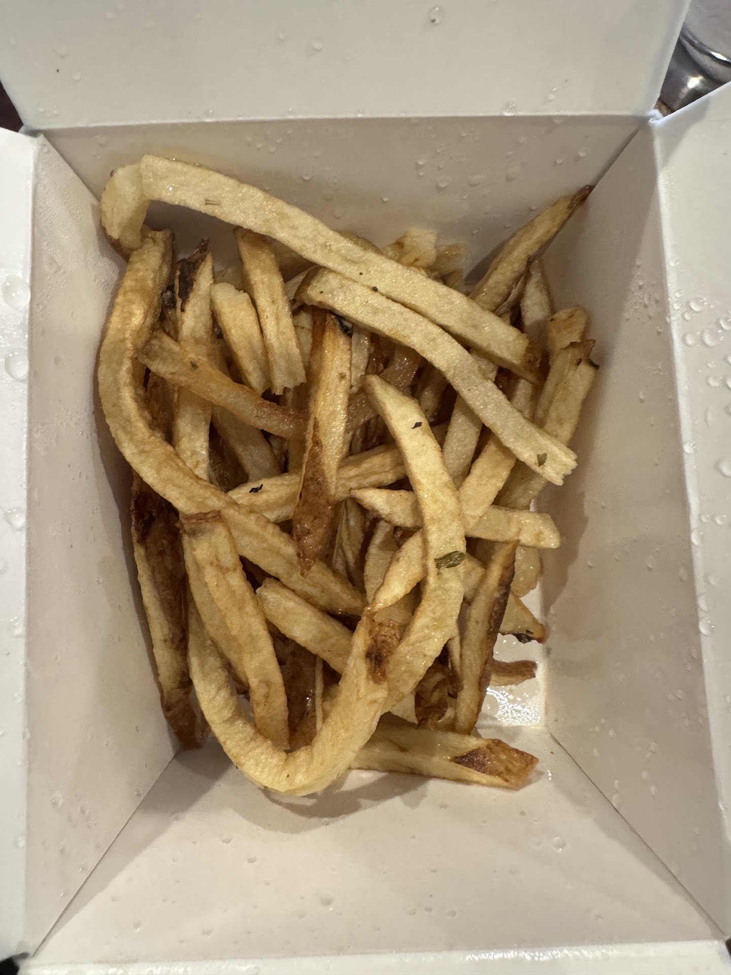 The food itself was bland. Here I thought I was getting authentic Greek food and what I received was a gyro with some kind of tasteless mayonnaise sauce instead of tzatsiki sauce. And the fact that it had stale French fries on it was mind-boggling to me.