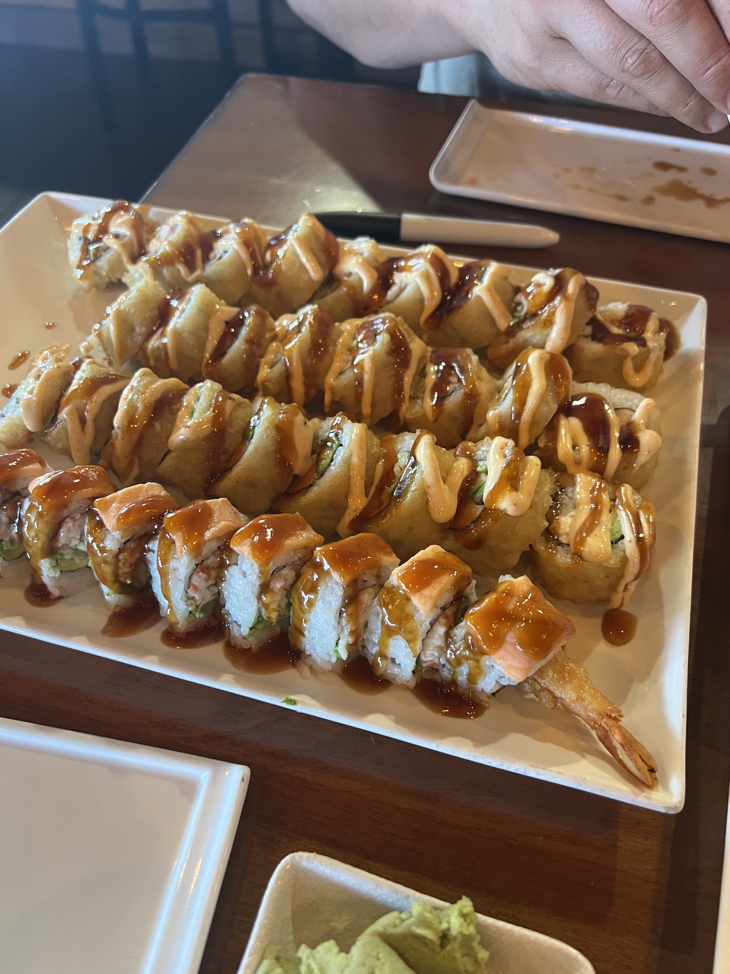 We went to Russian River and decided to stop there on the way down back home. It took us 45 minutes to get our sushi. Salad and miso soup was provided faster. They were busy, but not too crazy and it seemed like they have a good amount of sushi men preparing the rolls. The sushi is good, not exceptional, the normal quality for a AYCE sushi. The Vegas is delicious. We had one person on our party of four that did not want any spicy sauce. When they brought it to the table, one of her orders had spicy sauce in it. They did come back with the correct order. Service was not great⦠it was our first time there. We got the normal menu and 1 AYCE menu. It would have been nice if the server could have explained the menu (size of the rolls, etc). They also only give you 1 menu which makes it complicated for everyone in your party to go over the options. We asked for a second one and the serve did get it. Thereās a good variety of rolls, the spicy rolls are very very spicy (even the mild ones). Nobody came to check on us, we needed more napkins and did not get it⦠just not great. Wonāt probably be back there. Bathroom was clean and...