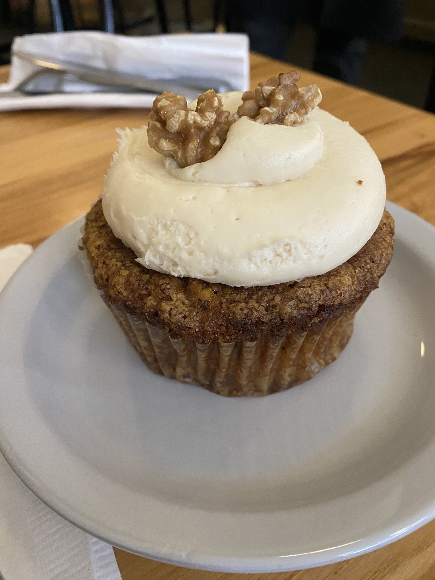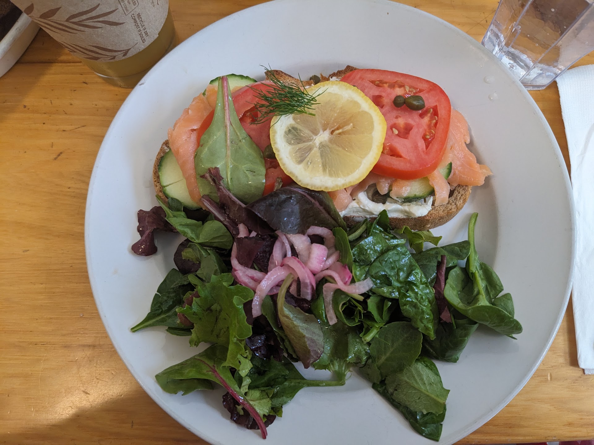 It's not even really a cafe, as you can't just take a table here, first you have to wait in line to order. So if you are meeting a friend, as I was, your friend can't wait at a nice little table, or anywhere, she will have to stand around until you arrive. Then you both have to wait in a long line. You can't have your coffee and look at the menu in a leisurely fashion, you have to stand in line first and order your food. Only then have you earned the right to look around for a table.