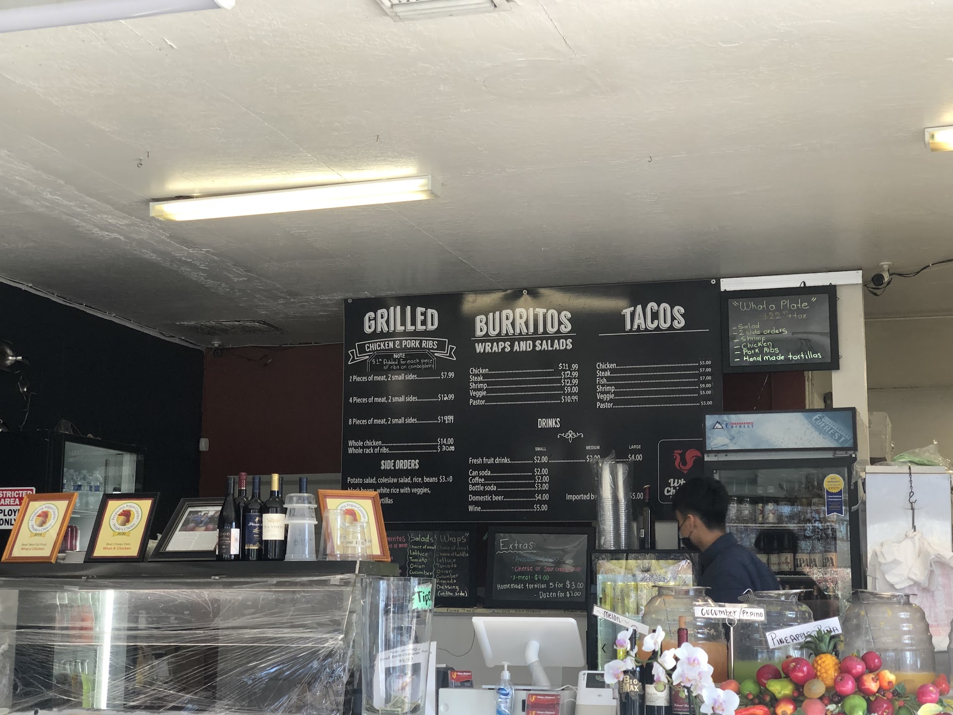Read moreFirst time here a week ago was great. My wife and I both ordered a regular chicken burrito. My wife loved the chicken quality (a rarity) and was amazed by how much chicken was in the burrito. I thought the same and the taste was very full and rich. 5 stars. I thought we had found a good place to get take out regularly. Second time there yesterday I tried the rib burrito and my wife had the same chicken burrito. Unfortunately neither burrito was even half as good as the burritos just the week before. The rib burrito had many bone fragments and gristle, and very little meat. The taste was ok but every other bite I had to pull out something from my mouth that was inedible. It made an unpleasant experience and I cannot recommend this item. 1 star. The chicken burrito was ok but not good, it contained about a third of the amount of meat as the week before experience. 3 stars is an average of the 5 and 1 star experiences. My guess is different staff were working. The place seemed crowded both times and their salsa bar has great salsas, although it is very difficult for anyone over 5'6 to reach in under the short opening. I'm only 5 11 and I have to bend down in a squat to reach the back salsa trays. Might try this place again, if a repeat of experience #2 we won't be back again. Whoever made my rib burrito should be waaaay more observant about what they are putting in someone's dinner. Some of the bones were sharp and could have hurt someone if they...