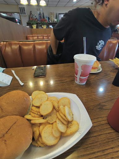 One waitress took order and brought drinks and then disappeared..we saw food sit on ledge for 5 minutes before another waitress brought food to us..room temperature everything..plus ordered bacon well done...came out chewy...it was 4:00...not busy at all..also small sodas are like a child's cup. Management needs to crack whip...Revision...waited a year to come back and here is my review for second visit.. Ordered cheeseburger hoagie..cheeseburger with the works...onion rings...large chips.. and small coke. First complaint is they charged 15 cents for 2 pickle slices and 20 cents for a small slice of tomato? Who does that? The bacon was ordered well done however came out stringy on the ends... Ok...looking past that the chips that I got were were literally not fried long enough...more like boiled potatoes slices...how can the cook and the server not notice this? They forgot the onions on the burger, my cheeseburger sub roll was changed which was a big dissapointment...not soft like the original style.The onion rings were the cheap processed kind...cost $2.50 and there was only 5. To top off the dinner the small coke I got which was $1.50 is still the childs cup!!!!! I realize they are the only game in town but they seriously need to work on consistency. This place has been in buisness since I was a kid...I am sure the owner has done well as this place is a little gold mine however he needs to wake up and get this serious about...