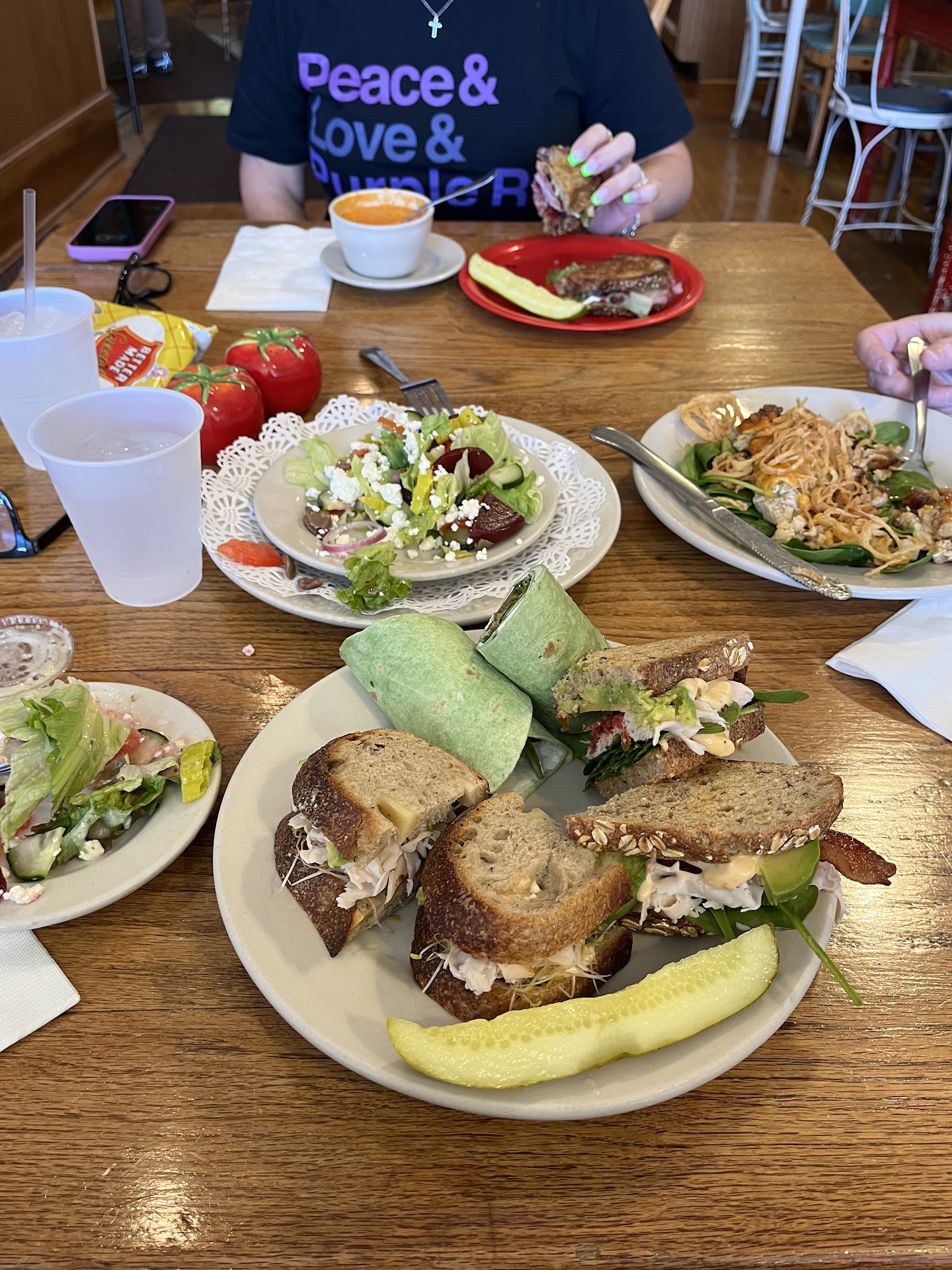 Read moreWhat a find!! I was in town for work from NJ and just stumbled into this gem with some coworkers. Three of us had tomato soup to start which was perfect with the snowy weather. The sandwiches were just layers of yum! I had a turkey club. The bread was hardy, the turkey was fresh, the avocado was ripe, the smoked cheddar and tomato mayo added such wonderful flavors! I feel silly raving about a sandwich like this but it was truly THAT good. Now...the people...SO nice and very attentive. Oh my goodness and I almost forgot about the deserts! Peanut butter bars and their cookies - there just are no words!! Thank you, Julie and team, for a...