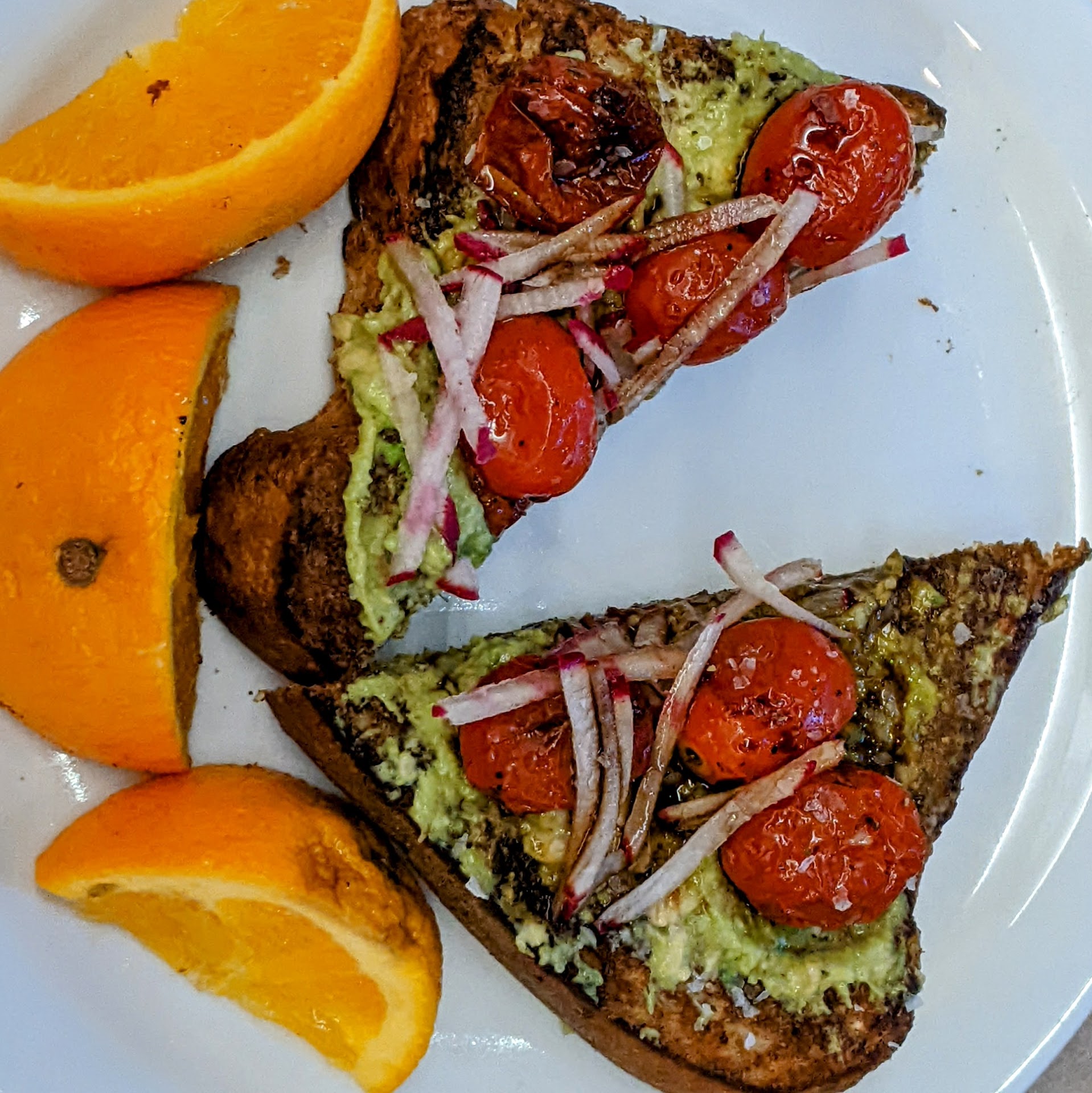 Read moreI visit Petoskey often and have always wanted to visit this place since I love the outside decor. The inside is just as interesting and I really enjoyed looking all around. However, I was confused by the ordering process initially. Maybe some signs around (on the tables maybe?) or a large sign at the entrance that gets your attention (maybe there was one and my friends and I missed it) and explains the whole process will be nice. When we went inside, we couldn't even tell if we needed to seat ourselves or not. Ordering was easy enough but staring at the menu on the wall to figure out wasn't the most convenient way of choosing what I wanted since I need to be careful with ingredients. These are all minor issues though. If the food had been good enough for the price, these wouldn't have mattered. I was very disappointed with my avocado toast. There was hardly any avocado on the bread to make it an avocado toast (see pics). It tasted good enough and the price was pretty decent, but I expect a good amount of stuff besides bread on a toast. If I knew it was going to be that little amount of food, I would've ordered a full order of pancakes as an add on. That said, I also got a single order pancake which tasted good but was a bit smaller than I expected for the $5.25 charge for the side pancake. I ended up getting hungry three hours after my lunch. My three friends were happy with their orders though (see pics) and liked what they got and thought the meals were big enough. Maybe the specific items that I ordered are small...