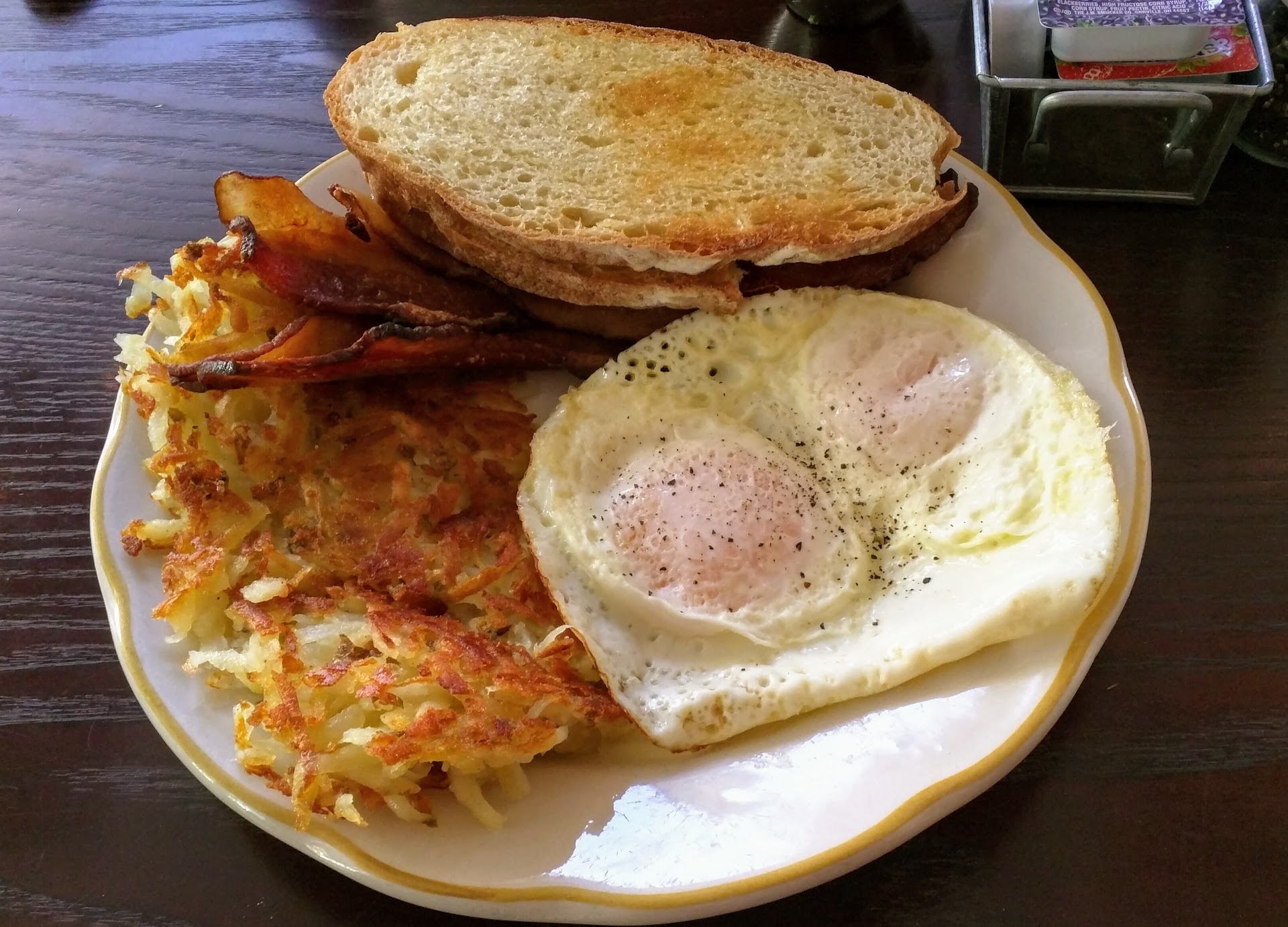 Overall the food wasn't bad, though it's overpriced. The bacon, hash browns, and english muffin were fantastic. The eggs and pancake were standard. There's not many choices when it comes to breakfast in downtown Petoskey, but be prepared for the possibility...