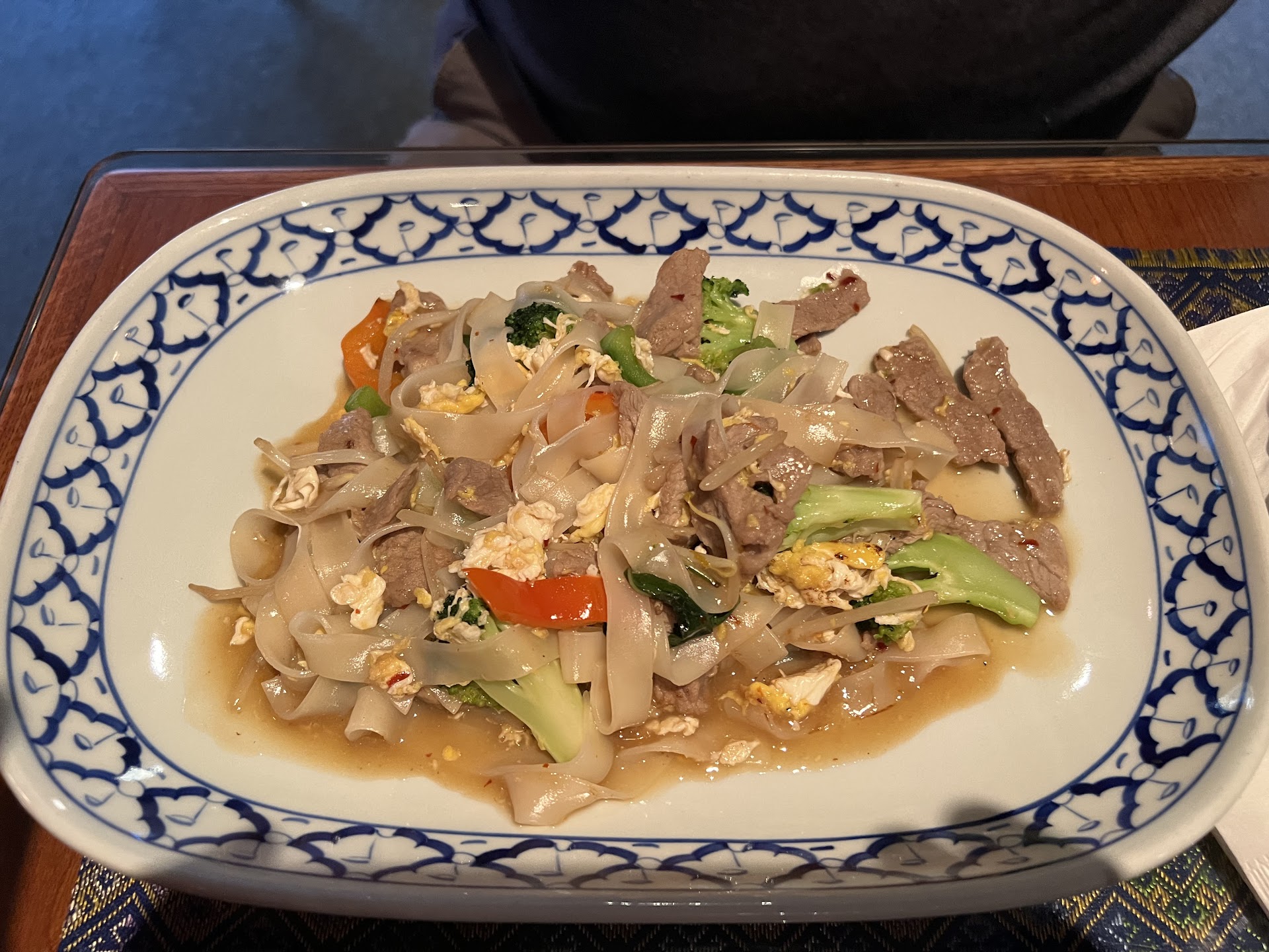 This place still managed to go lower. I ordered Drunken Noodle. For those unframiliar, this is usually a spicy egg noodle dish with a bunch of veggies & usually pork or chicken thrown in.