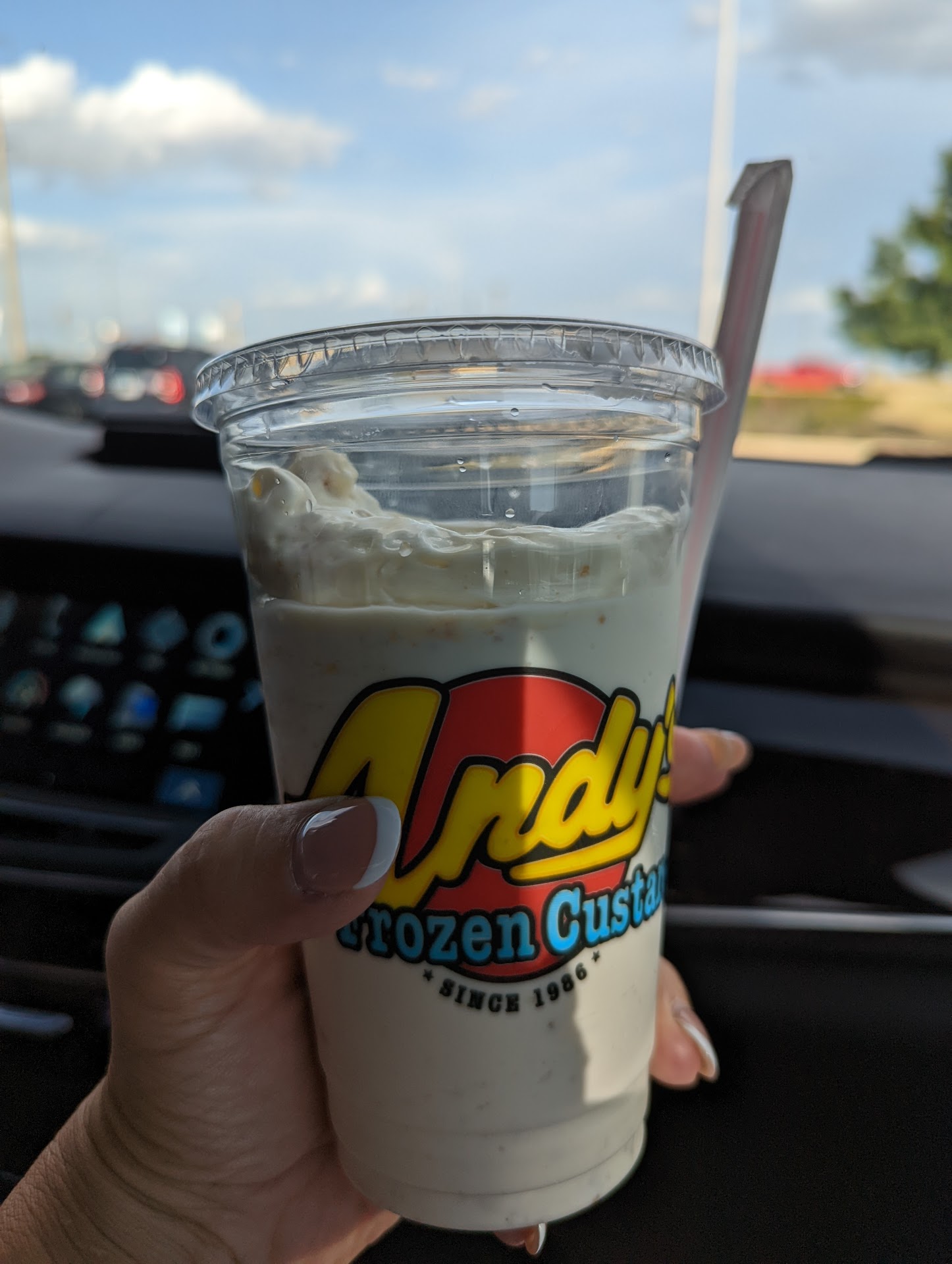 When we first discovered Andy's, I thought it was the best place ever. I absolutely love sweets (especially frozen treats). The first couple times we ordered here were much better than our recent trips. Lately I've been getting half-melted concretes or shakes. They've also been getting my orders wrong by not adding the right toppings. This evening we went and they tried to give me a plain vanilla shake instead of the malt with 2 toppings that I ordered. Then when I get home, I realize that they failed to add the caramel creme, plus my "malt" is very thin and much more like a melted milkshake. Not sure if they're malt powder is just very bad, or if they failed to add that along with the caramel creme.