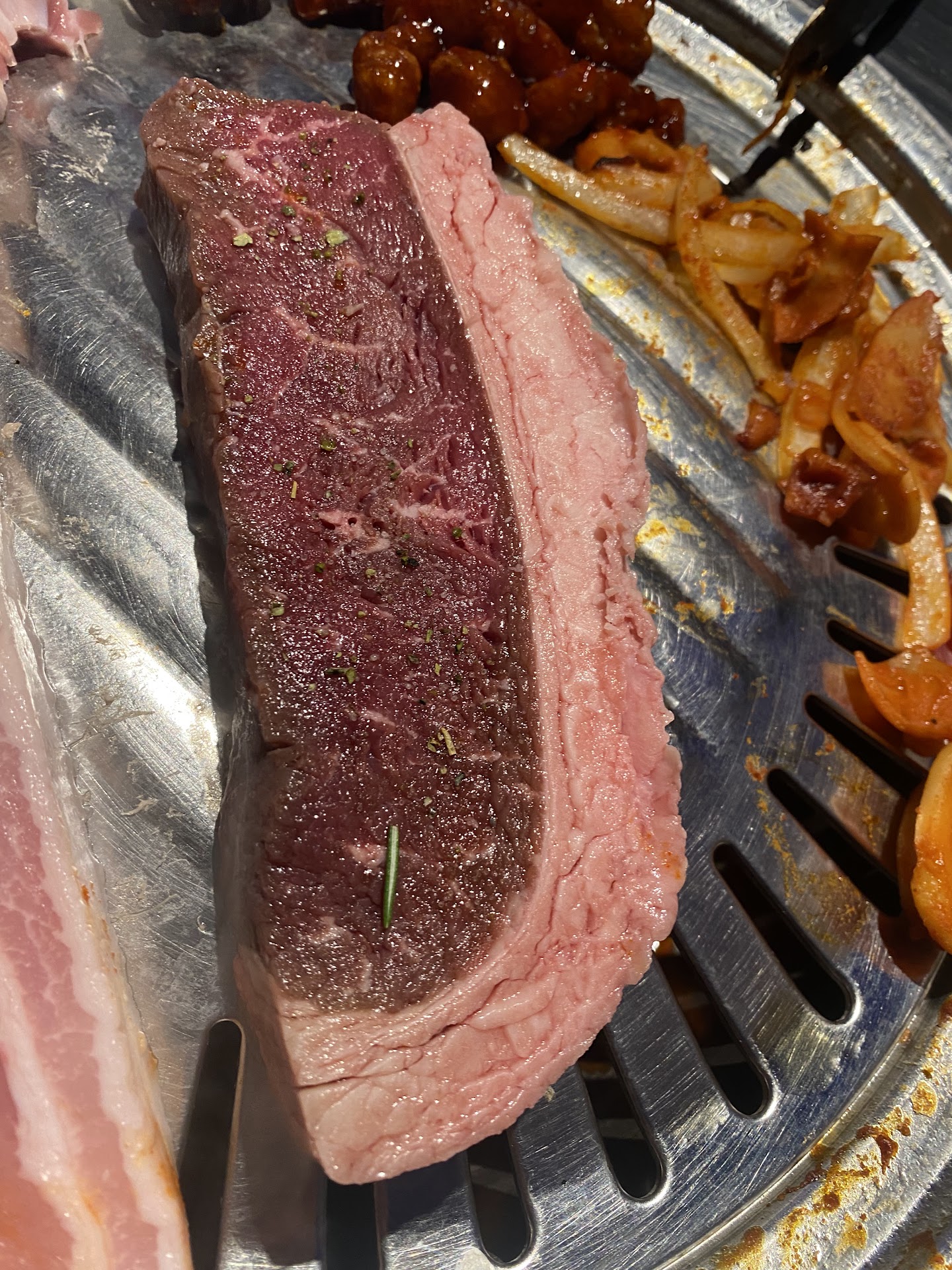 Read moreWhen we arrived at about 9:30 we were added to the waitlist. While we were waiting i noticed that they close at 11:00 so I asked the person at the desk that my wait time will put me sitting down to eat at about 10:15 so how will that affect my diner. He said it would not and in fact I would be able to stay until after 12:30. We were seated and the first thing I seen was the grill still had food around the rim along with grease from the previous guest. The grill plate was also oily and had stuck on food. I opened the tongs only to find food debris on the inside. I then opened the scissors only yo find brown oil between the blades. At this point I was very nervous since this restaurant is brand new. We ordered our drinks and the meats we wanted. There is a large amount of meats to choose from in fact 41 different items. There was a point we ate the little side dishes and then the server returned to tell us they were out of white rice but we could purchase the kitchen fried rice which we did. My Chinese wife said it was very good. At this point the food came out and we still had not recieved our drinks or napkins. The server once again disappeared I finally flagged another person for our drink. Still no napkins at this point. The grill eventually was burnt badly and our server came over and just stirred the items on the grill and asked if we wanted anymore items. The grill was not changed. At this time I noticed it was 11:10 meaning they were closed and they are now starting to force us out. No more refills nothing. The server came and asked if she could bring the check. After a bit another lady came that has the credit card machine asking if she can pay our check now. So what is supposed to be a 2 hour dinner turned into a 1hour and 10,minute meal due to being forced out. May give it one more chance but I'm not sure since my wife is Chinese and was...