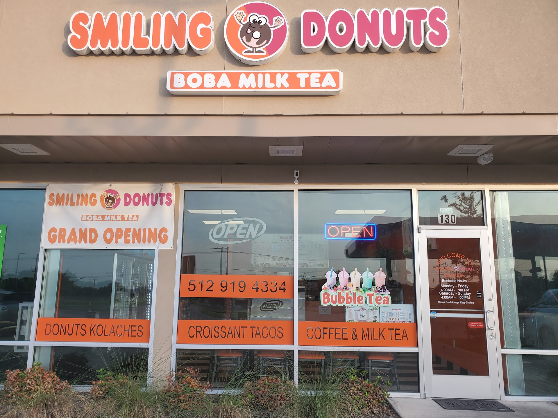 The donuts are sweet and fresh, the kolaches are good. I believe I've tried all of them. The breakfast tacos are good i really like the sausage egg and cheese croissant that my favorite. I definitely recommend Smiling Donuts for as a top notch breakfast spot. The customer service is exceptional!