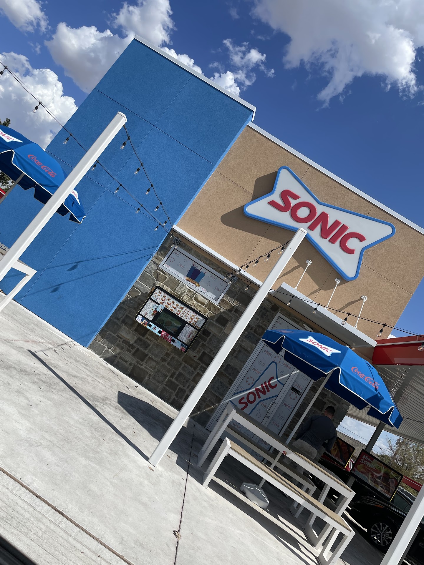 I stopped by Sonic around 4:30 PM and initially proceeded to the drive-through. My family suggested parking at one of the stalls for faster service, as there were a few cars in line at the drive-through. Following their advice, we decided on our order: a Garlic Butter Bacon Cheeseburger combo with a Caramel shake, a Super Sonic with bacon, onion rings, and strawberry Fanta, and a Super Sonic with Groovy fries and Ocean Water medium ice.