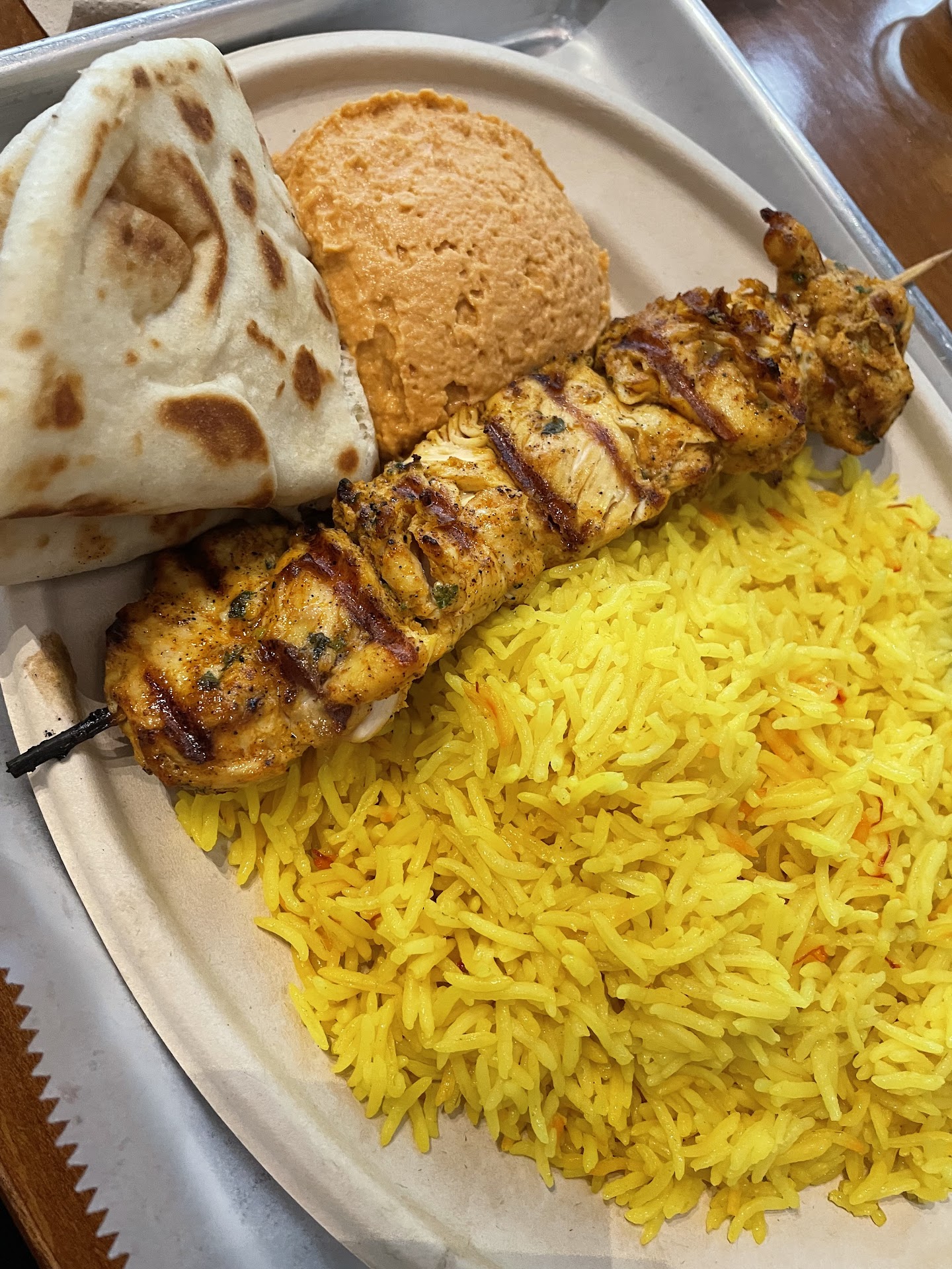 Ā Ā Ā Read moreThe food was just not good which was so disappointing. We were really looking forward to this new Mediterranean food near us, anxiously awaiting it's opening. The website was jazzy, but there's no way to order online for this location yet, so we called and placed our order, no big deal. When we went to pick up our order, we had to wait in the regular line so we could pay - so what's the point of placing an order to go? My husband got a wrap which was fine - it was super bland, really nothing exciting there. I got a plate - lamb and saffron rice. The rice was just bad - it was lacking flavor and almost had a hint of fish that had gone bad - it just wasn't right. The lamb was underwhelming in flavor and texture. The dish came with no sauce or hummus so I was left with bad rice and dry lamb with nothing to help either. My 2nd side was the Greek salad which I was really looking forward to. The Greek dressing was just not good at all and I LOVE Greek salad dressing. It almost tasted soapy. Luckily, I had some store-bought Greek dressing in my fridge so at least I could eat that. Otherwise, the meal was almost unpalatable. If I had ordered it in restaurant, I would have asked for my money back, and I have never done...