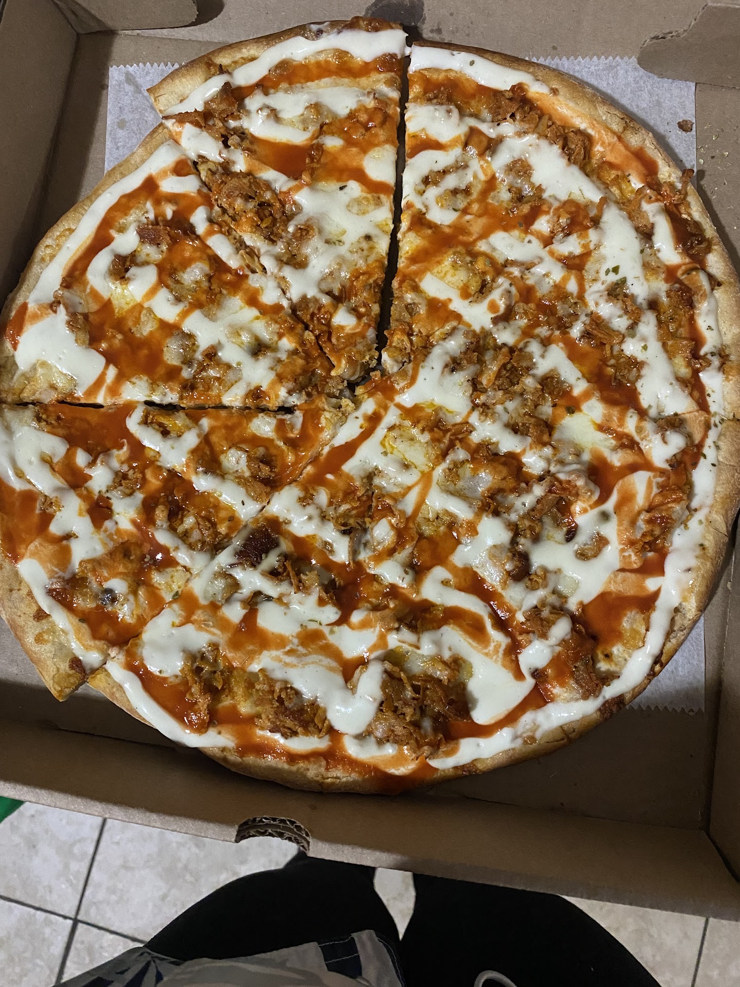 Read morei ordered a chicken bacon ranch pizza & it was top tier disgusting ! it literally taste like it was sitting out all day on display & the delivery guy had the nerve to make a smart remark about the address i used stating itâs around the corner yet thatâs the address to my apartment & i put in the notes what door exactly to meet me at being as though its an apartment complex⌠he was snobby because he canât follow directions. iâll never order from here again it was a waste of...