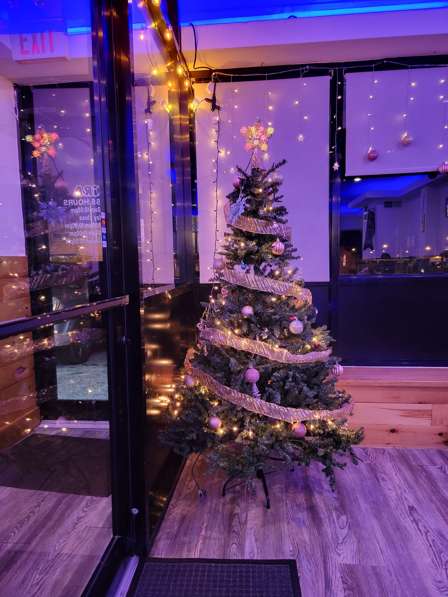 The service was very nice, lovely, and the atmosphere, cleanliness, and lighting in the restaurant is great as well. It's festive this time of year.