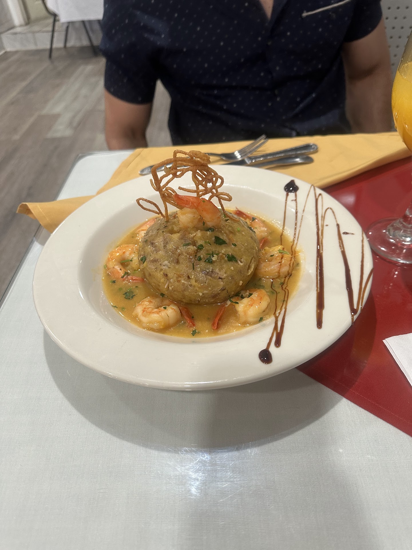 I had bariatric surgery two years ago, so eating certain foods can be hard on my stomach. During my visit, I ordered the Mofongo with Garlic Shrimp and Chicharrón, and it was delicious! The mofongo was soft, and the chicharrón was chopped into very small pieces, allowing me to taste it in every bite. The shrimp were cooked to perfection.