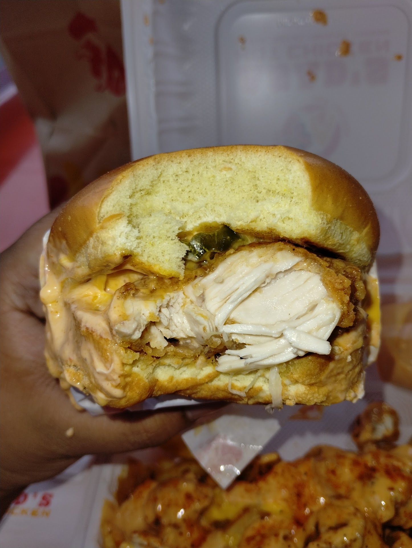 The chicken was SO greasy, the breading was falling off of the chicken and lacked flavor. If "hot" is a flavor, then they missed the mark entirely. If this was half the price, it would be worth it.