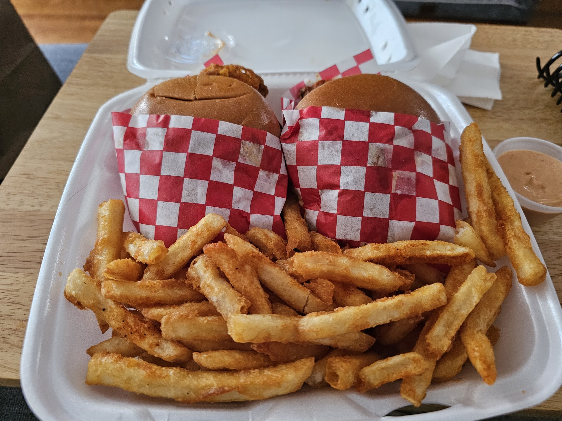 Looking at their menu and photos of their chicken, I knew I was in for something spicy and juicy. I ordered the #2 which comes with two chicken sandwiches (got them hot, although they have two spice levels above that) and fries. I also ordered the loaded fries which can also be ordered at varying spice levels.