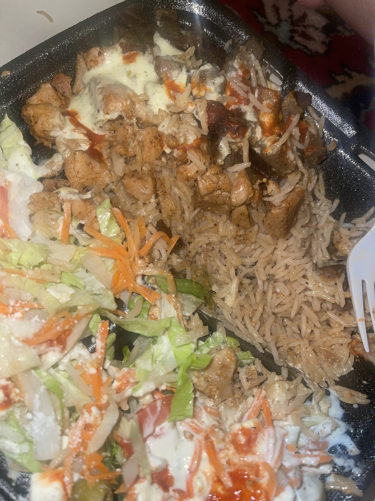 Read moreOmg the food was so good I could cry. I didn't want the meal to end. Great hot food, nice size portions. Price is very reasonable. Taste was wonderful with a genuine homemade quality, just so much flavor for days. The salad with the feta cheese, onions,black olives, cucumber and tomato, the homemade white and hot sauces. Man it was truly far better than the average halal food cart in any of the neighborhoods. The falafel is amazing.... the other platter was fish and it too was amazing, fresh tasting and perfectly cooked. I put this restaurant in my list of favorites and will be a frequent patron. I hope they last a very long time. This neighborhood used to be lacking in good halal food, I am happy to say that is no longer the case. Do not hesitate to try this place if you love lamb over rice or falafel.... but so far the fish is my favorite. My only request would be can you make a platter that is fish and falafel. If not perhaps could you offer the fish or falafel as a side dish to add to other dishes. Please and thank you 😊 The food was delicious and highly...