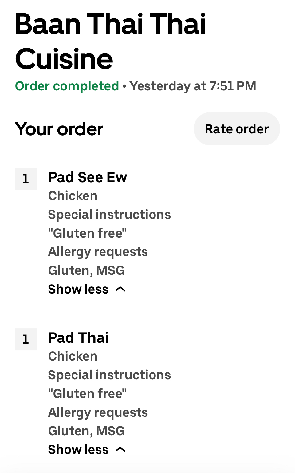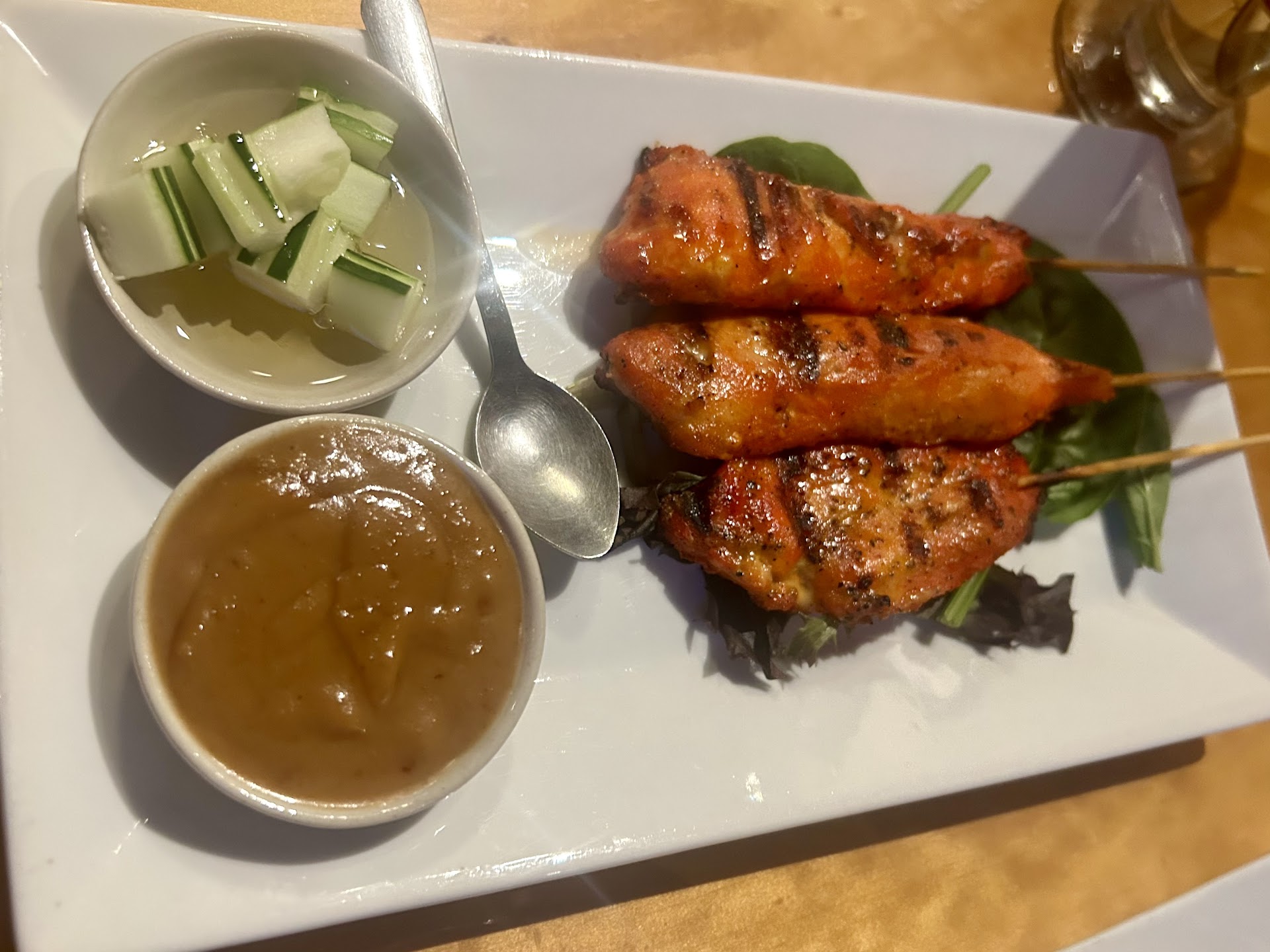 Read moreWe had a craving for Thai food on a Friday night and Baan Thai happened to be near by. The reviews and the pictures did give us some expectations. However, our food experience with the food was a disappointment. We ordered 2 kinda of stir-fried noodles, one is pad see ew and the other one is pad kee mao. The noodles were overly cooked. They looked like SMASHED NOODLES????? We should have really taken picture =(((. We were like what's going on? They added Chinese cabbage to their drunken noodle which is a strange addition and it wasn't listed in the menu. We chose beef as our choice of protein. Uhmmm...should I call it beef or beef jerky because it was dry and chewy as sh....I was hungry to a degree I thought I could finish a cow but I really couldn't finish my plate of food....Now let's move on to the mango sticky rice. Mango was not peeled properly and the coconut sauce was liquidy unexpectedly. Like the dessert looked so gorgeous in the pictures on their Google page? It felt as if they didn't have enough coconut sauce so they mixed it with water. The only good thing was the sampler appetizer. The satay chicken in the sampler was really delicious. We regretted not ordering 10 orders of those instead of the noodles. Well, it was an unforgettable experience that we would never come back. Really this was the worst Thai food experience I've ever had. I only gave review once in my life so far. It was because the food was so good and this is my second time because the food was so bad. Congratulations to those people who had good...