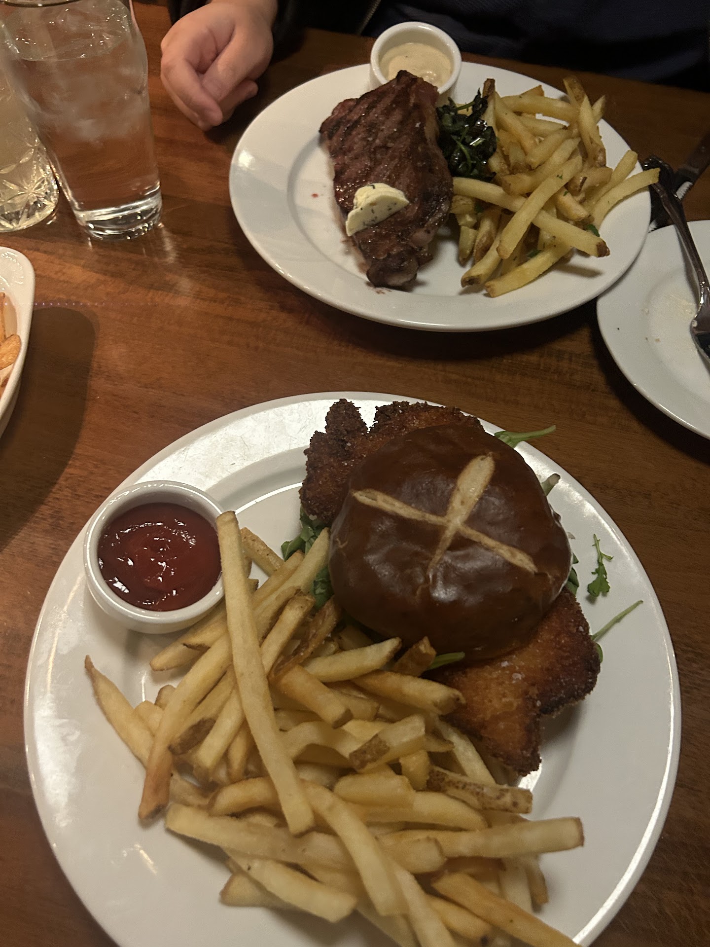 Went for dinner for the first time to try something new. Only "complaints" are relatively minor. We started with cocktails - one off the menu and one a classic that I like to see how new bars do. Both were excellent and made correctly. Ordered the $15 cheese plate (picked 3 from their list of 6). Servings of cheese seemed right for the price and we were each able to enjoy several pieces different ways. For mains we both went with the burger and were not disappointed at all. Bun was a good size (not one of those huge ones where you're eating 80% bread), burgers were well formed, cooked properly and very juicy. For the price it's definitely one of the better burgers I've had in a long time.