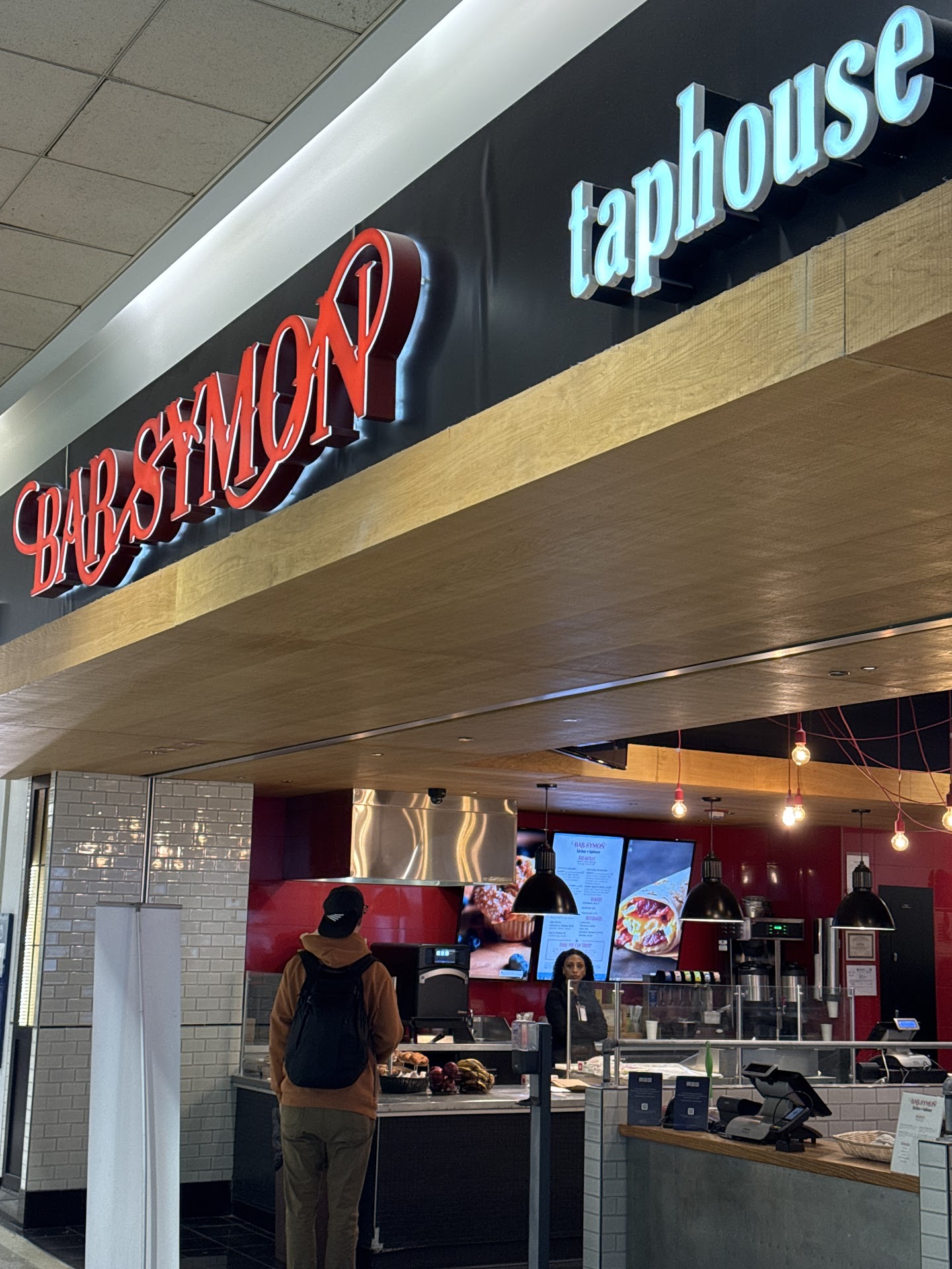 Read moreMy girlfriend and I we decided to stop at bar symon to drink and eat there since our gate was right close by we got there around 4:00pm ,the bartender was awesome, the bar looks nice and the basketball game was on that was a plus ,everything strat great till our fries took 45min we heard the bartender went to the cook and ask for the fries after 10 min pass by then we hared the cook saying on reply he is not going to make the fries it was an open kitchen you can see and hear everything... at the first we thought he was joking then second time the bartender went back and ask again no fries yet and no Manger around at that time after 35min of waiting the fries come out and it was undercooked at this point we don't want it anymore ,Me and my girlfriend shared the fries that come with my burger .you should definitely fire your cook his horrible and he can not do this to the guests and we never gonna come back here again ( was a bad experience to hear him saying he is not going to make the fries really what wrong with him ) only 2 starts rating because of the bartender he was nice and he apologize also offer to take undercooked fires from our bill. simple thing could be avoid if you have a Manger and a cook who suppose to do the job hope the owener get to...