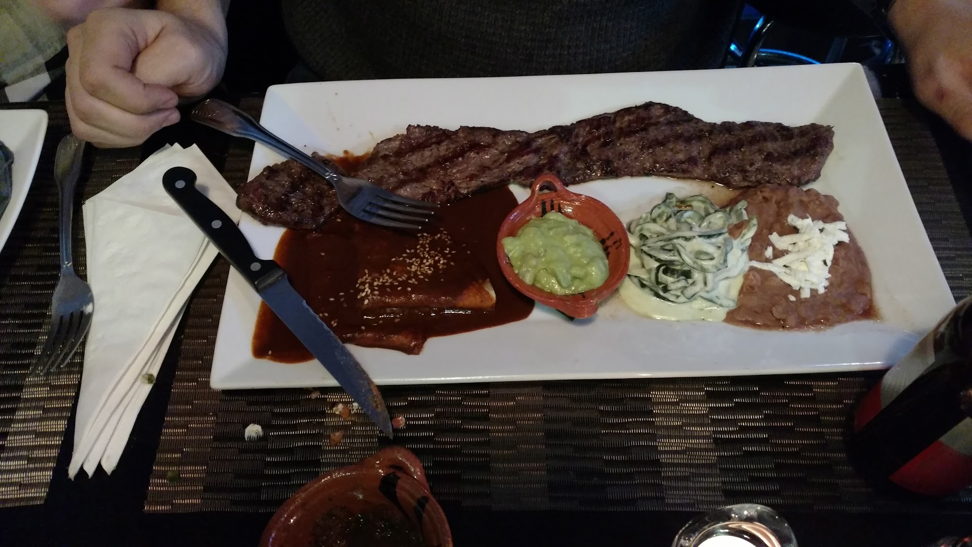 We recently went to Blue Corn to celebrate our daughter's birthday. I have to say the bartender makes really flavorful cocktails. I had the tamarind Margherita, and it was awesome. We now have to add Blue Corn as a place to get delicious chicken nachos. They were so very good! I had the Sabana, which is a thin, flavorful steak, my daughter had the Cubano, which could literally feed 3 to 4 people...the sandwich was awesome. My husband had the steak special, the ribeye and plantains were cooked to perfection. As always, the place is clean, the servers so very nice and we love it here. My son asked for an authentic Mexican restaurant that we could walk to and we opted for the Blue Corn. It was an excellent choice. It's a warm, clean, friendly restaurant with attentive servers and delicious food. Like their name, their chips, tacos, Huaraches are made of blue corn. My son had the Huaraches, which is an ovaI shaped tortilla with your choice of topping. he chose the chorizo. I had the tacos pastor which is pineapple and pork. We were given chips and salsa while we waited for our food. Delicious! Our food arrived beautifully presented and hot, which means it was freshly made and it was delicious! I opted for dessert and had a piece of cheesecake which was also homemade and delicious! We can now add Blue Corn to one of our favorite Mexican...