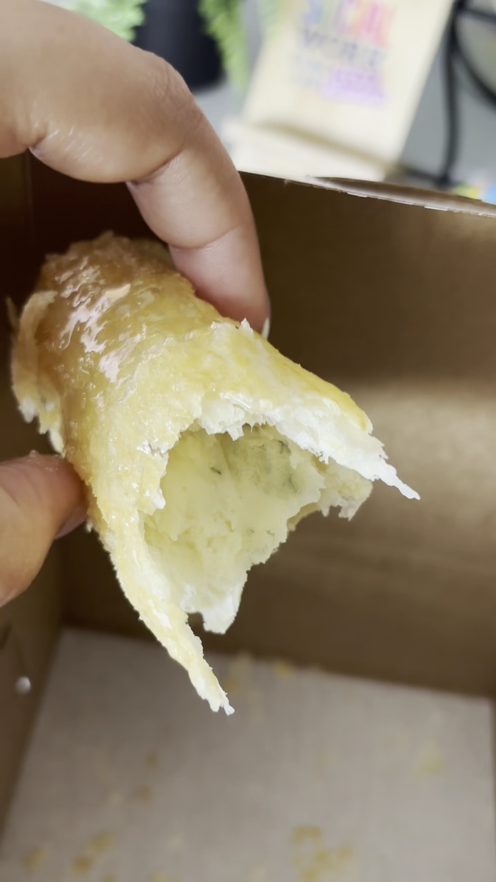 This week, my girlfriend ordered quesitos for her and her coworker to enjoy for lunch. After taking several bites, she noticed the pastry had mold on the inside of the cheese and it forced her to vomit! My pregnant girlfriend eating moldy pastries!