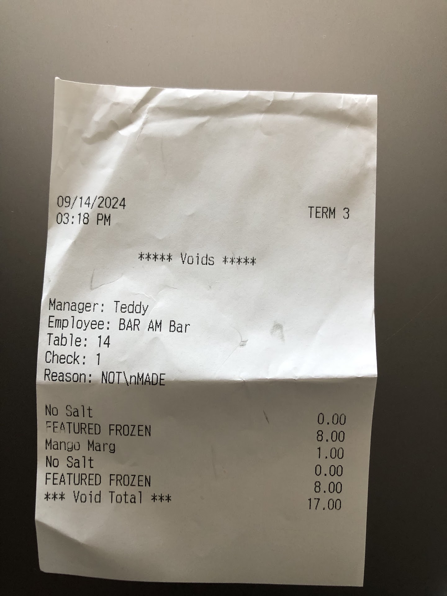 Read moreMy realtor turned me on to this place in 2022 and Iâve been going since. A few weeks ago. We ate here and ordered a few tacos and two margaritas. We got the food, but our drinks never came out. We were done eating and ready to go. The manager gave us the margaritas and refunded the cost of $17.00. He gave me a receipt showing a âvoidâ for the drinks not a refund. Notice on the voids receipt ( picture below) It doesnât state how the $17 was refunded. A refund receipt usually show the card name and the last four digits on the credit card being credited.