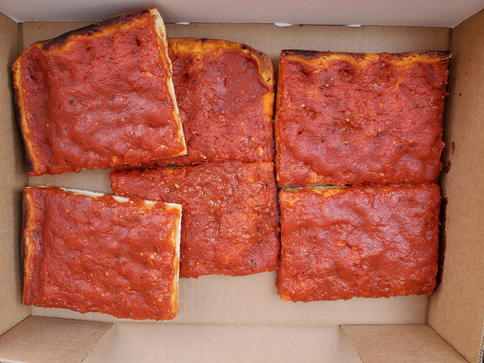 Read moreWe tried the legendary Tomato Pie and my first impression was that it was a pizza missing cheese, excellent but incomplete. However, as the taste of the sauce lingered, I started to really notice the complexity of the fresh herbs mixed with the sweet tangy tomato. It was one of the best tomato sauces I had ever had and it was atop freshly made bread that was both doughy and a bit crispy, much like a focaccia. Before we knew it, it was all gone and we were aware that we had eaten something excellent. It was a mistake to think of it as a cheeseless pizza, although people looking for something like that will be quite pleased. Instead, think of when you've seemingly finished a great dish with marinara and you have before you a plate or bowl filled with leftover sauce and you scoop that up with bread, hopefully fresh and doughy, in order to extend the dish's delicious life until there is no red left and you must finally relinquish the experience to the realm of memories. The Tomato Pie is THAT experience.