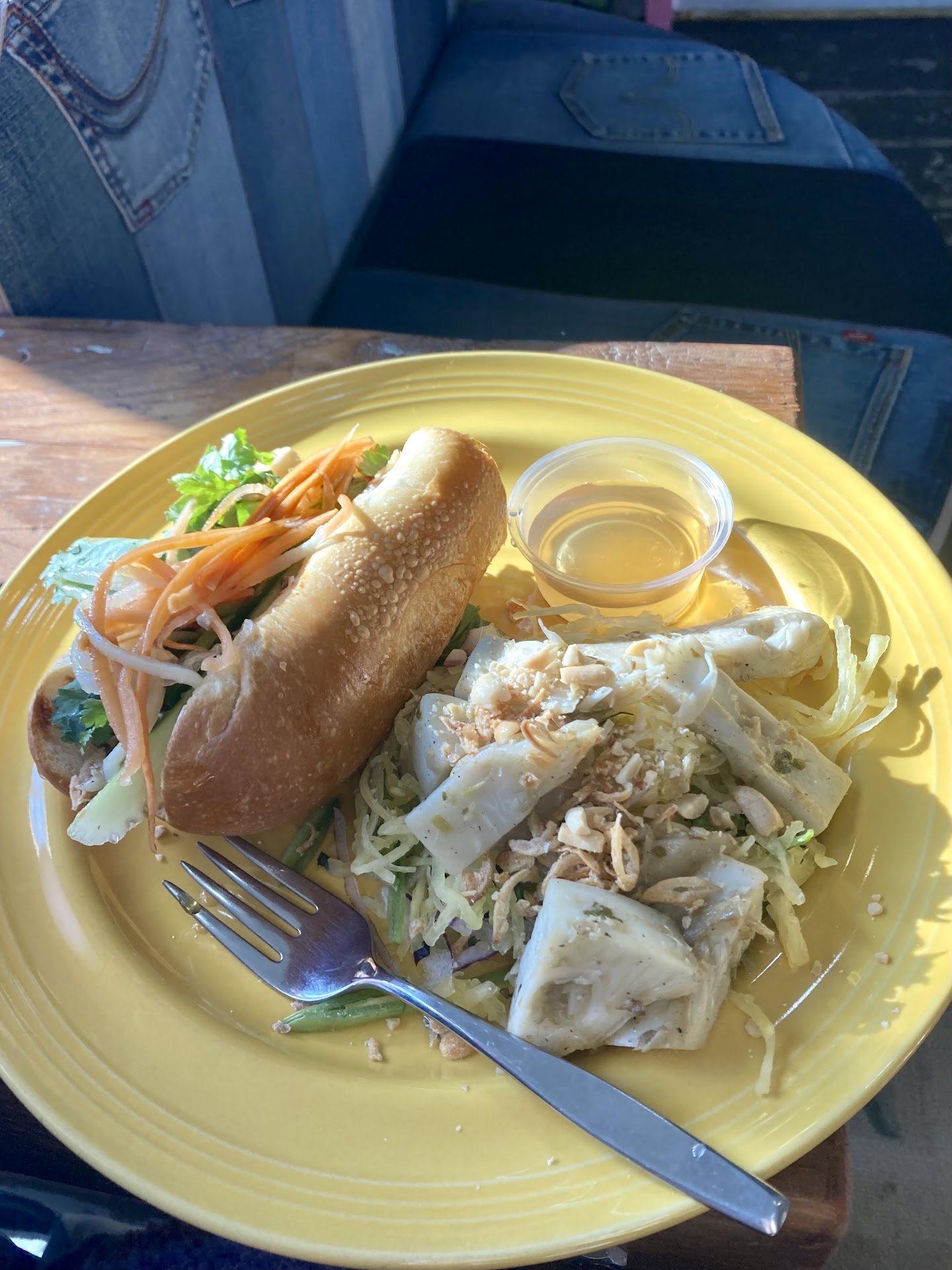 Pete alone is worth the price of admission—a friendly, warm, interesting man who puts a personal touch on the visit. And then you get to his food. Oh my god the food. Both the meat and vegan bahn mi sandwiches are excellent, but then you get to his young jackfruit salad and wow. I can't say enough about the flavors. My favorite thing on his menu, though, has to be The Pete—a coffee of Pete's own creation. Turmeric, ginger, coconut oil, orange zest, with dates for sweetness. I can't put into words how much I enjoyed this coffee other than to say that I forced myself to only drink half of it so that I could continue to savor it the next day.