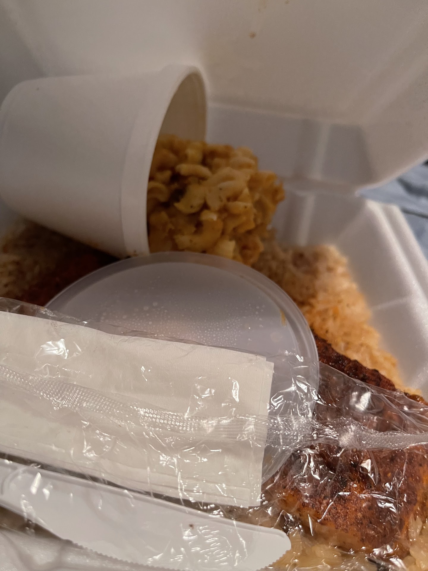 Read moreOkay so yeah I looked at the google reviews & seen some good & bad but I wanted to see for myself this food is horrible I didn’t ask for rice on top of that the rice was soooooooo watery the macaroni watery too it’s like soggy noodles! The yams was hard and everything was suppose to come in a platter! I guess they didn’t have the mango lemonade so they sent me 3 sodas never called my phone to say they didn’t have it! What if the customer don’t drink soda? Which is I really don’t drink soda! Listen don’t order from this spot Glaze salmon ? It wasn’t glaze it was salty and nasty who the cook? Get rid of them ASAP lol shut this place down! Wish I can...