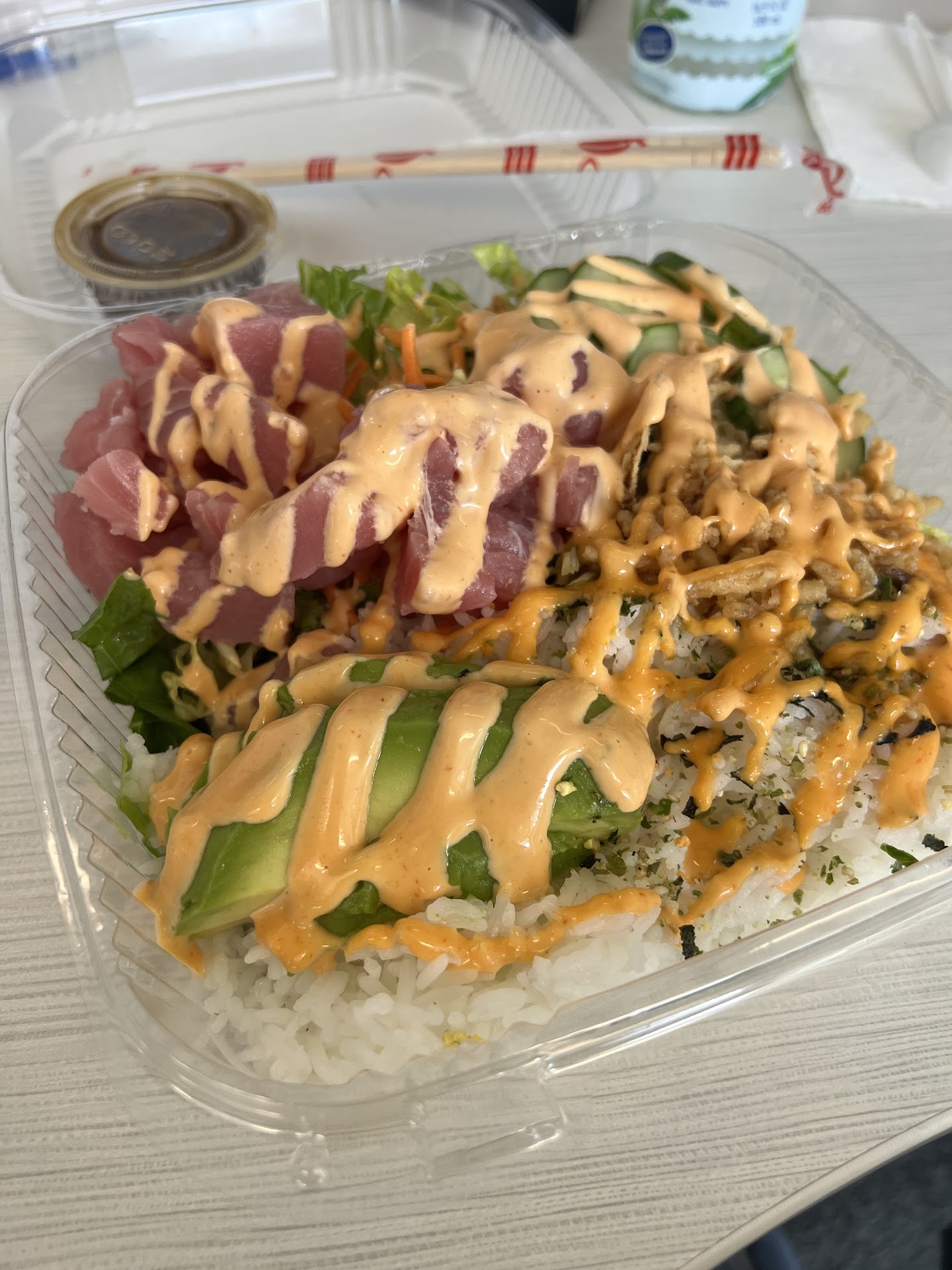The poke had a lot more vegetables than I anticipated but it was still good.