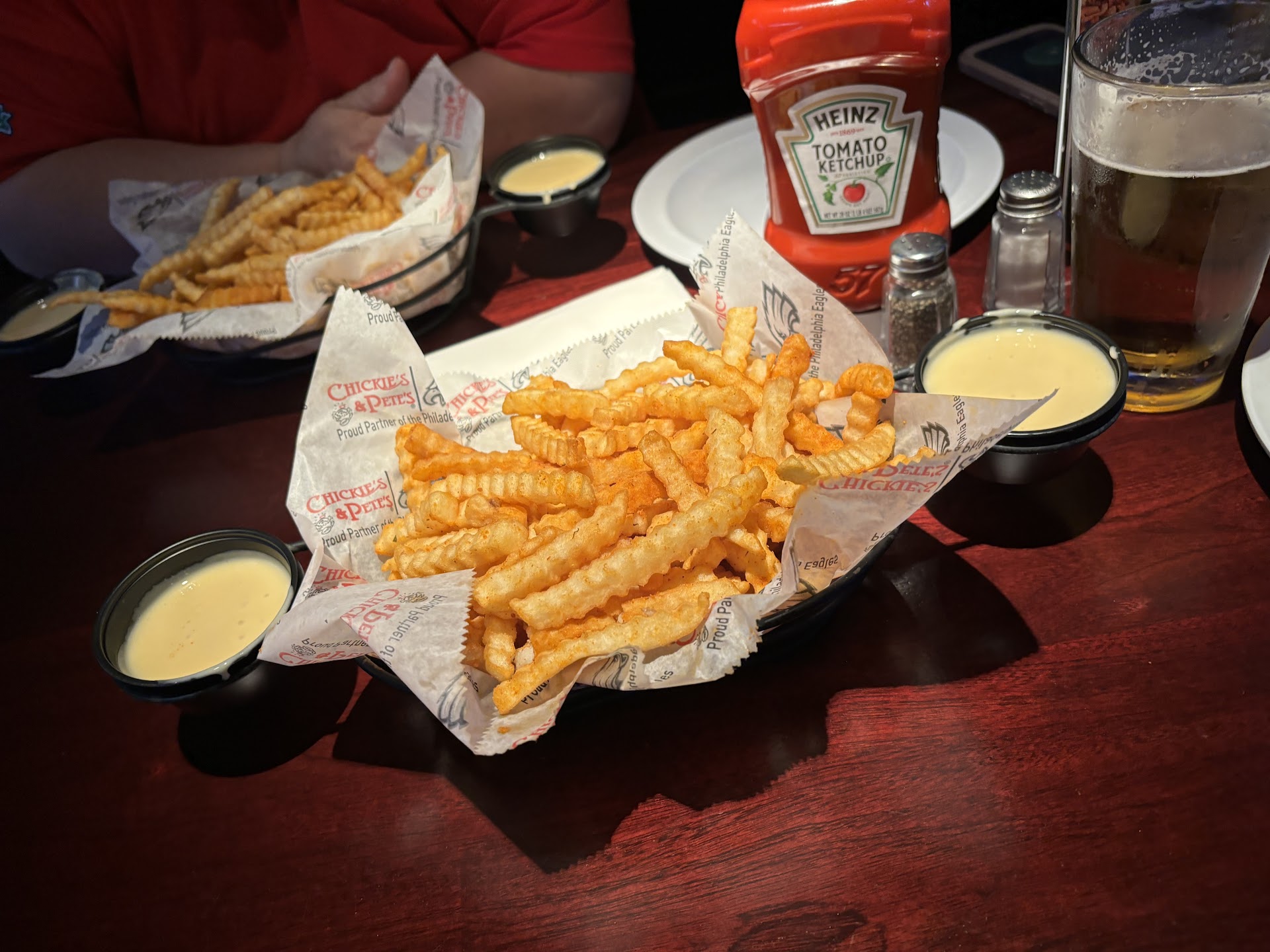 After traveling over an hour (I live in Montgomery County) I was surprised to find parking relatively easy. I was meeting with a group of 8 Co workers at Chickie and Pete's to have dinner before the game.
