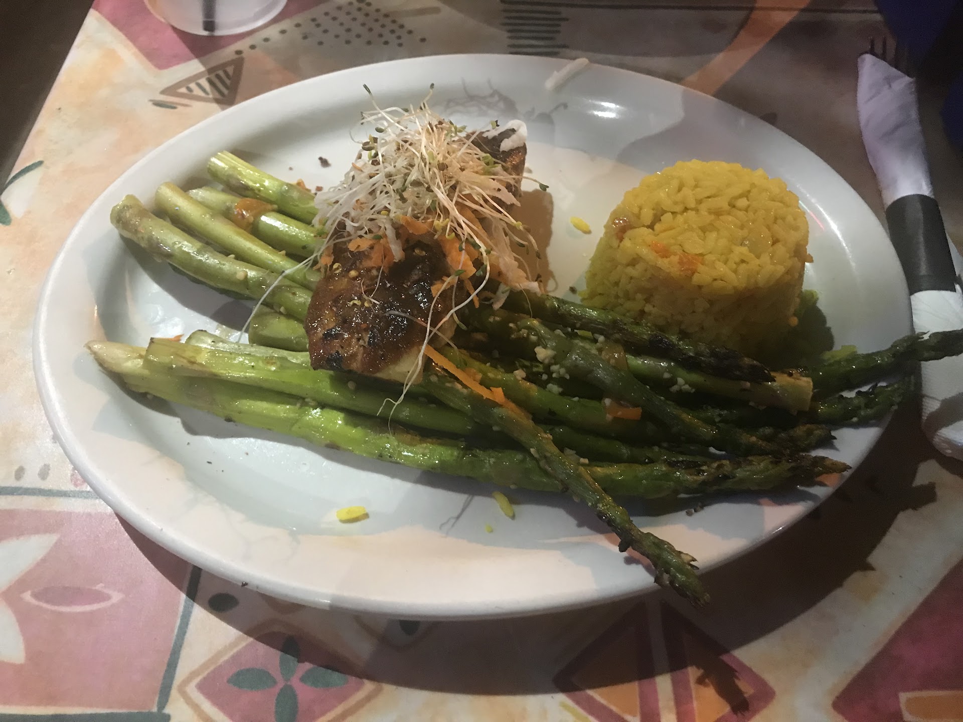 We get our food. I got some Chicken Mahi Mahi meal with a spicy salad on top, is how they described it. Peep the photo. That meal was $16? Whereâs the salad? Now now, these are things that kill me at restaurants. Food portion and quality versus pricing. Do better please. Then her meal, she enjoyed, but it was just a salad so. She ended adding some salmon to it, and the lady said it would be about $4 extra. It was $6. Like... so her meal was $15, as well.
