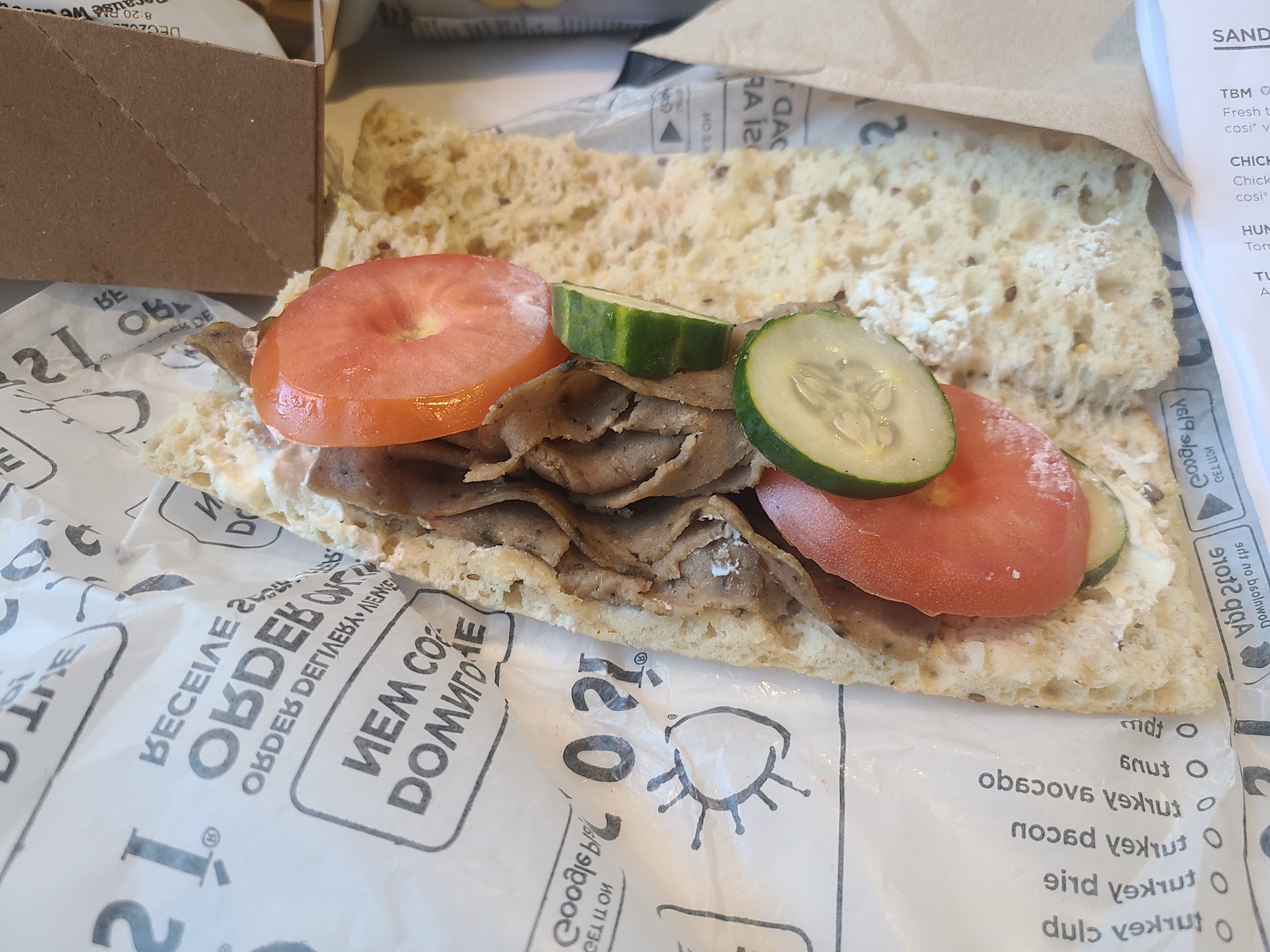 Luckily, the younger guy agreed to make me a new one. I felt I got ripped off though because it was 70% leaves and cranberries and not tossed well. I found a stem in my salad as well. The fresh basil is what makes the Mediterranean sandwich so good and there was NO basil! The workers did not seem to care about quality.
