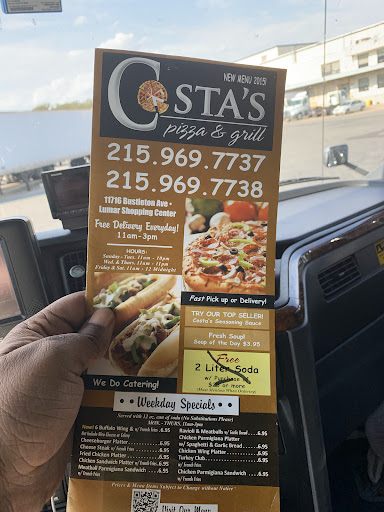 Sam,Mona,Mario, Nancy I can't believe I forgot Helen, Tommy. If anyone out there works in the food industry Knows what sacrifices it takes to put a product out ,keep A business running, keeping customers happy, ON A DAY LIFE THROWS ANOTHER CURVE BALL THAT HITS YOU IN THE FACE BUT YOU TURN AROUND AND TELL LIFE "HAVE A NICE DAY" ALL WITH A SMILE?, THAT IS SAM AND THE CREW AT COSTA'S. THEY DELIVER A GREAT TASTING PRODUCT, SAM AND COMPANY HITS ALL 3 LEVELS OF QUILTY LOOK GOOD, TASTE GOOD, AND FUN TO EAT. IT TAKES A LOT TO GET UP, GO IN ,OPEN THE DOOR AND HAVE SOMEONE ON YOUR Doorstep SCREAMING AT YOU BECAUSE YOU ONLY HAD ONE TOMATO ON YOUR SALAD INSTEAD OF 2 AND YELL I WANT MY MONEY BACK. I am a 40+yrs in service industry since I was 14 now I'm working with Sam and company for about a year and half now, every day is a new adventure! THAT'S SAM AND CREWS! GOOD FOOD TAKES TIME, THINGS HAPPEN ORDERS GET BEHIND SAM BENDS OVER BACK WORDS FOR CUSTOMERS AND KNOWS WHO IS WHO WHEN A TICKET COMES SAM Hopefully things will be changing in the coming year And prices drop. your business means a lot to us. It's not as simple as you think. Nobody should be out to Ruin a family business, Because it only leads to the Down fall of your neighborhood....
