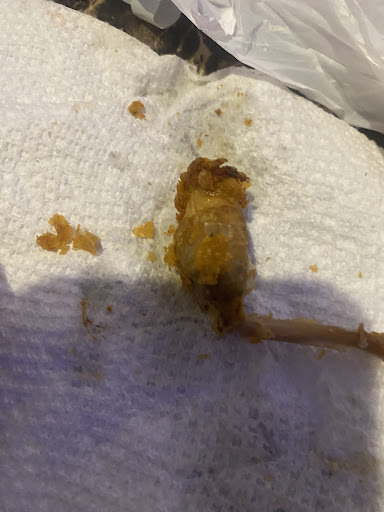 If I could that wouldnāt even been given!!! I ordered a three piece only! I ate the wing and then began to eat some of the breast. I started to take the back off and this is what I found!! Trifling!!! It looks like something I donāt know what it is??? I will never order from them again!!! And the bread also looks like a rat, mice what ever has gotten into first!! I swear thatās some type of fried rodent š«š«please be careful! I donāt even want to eat out again!! This really...